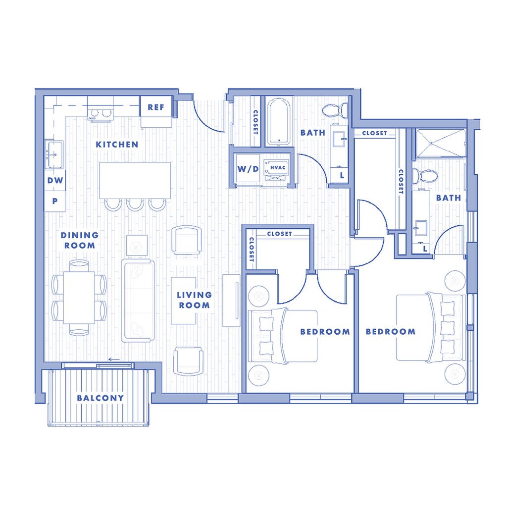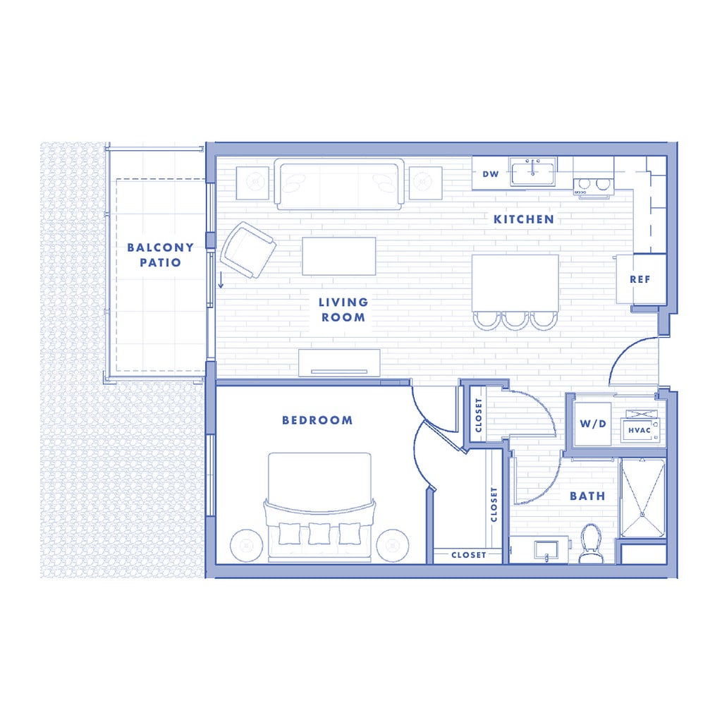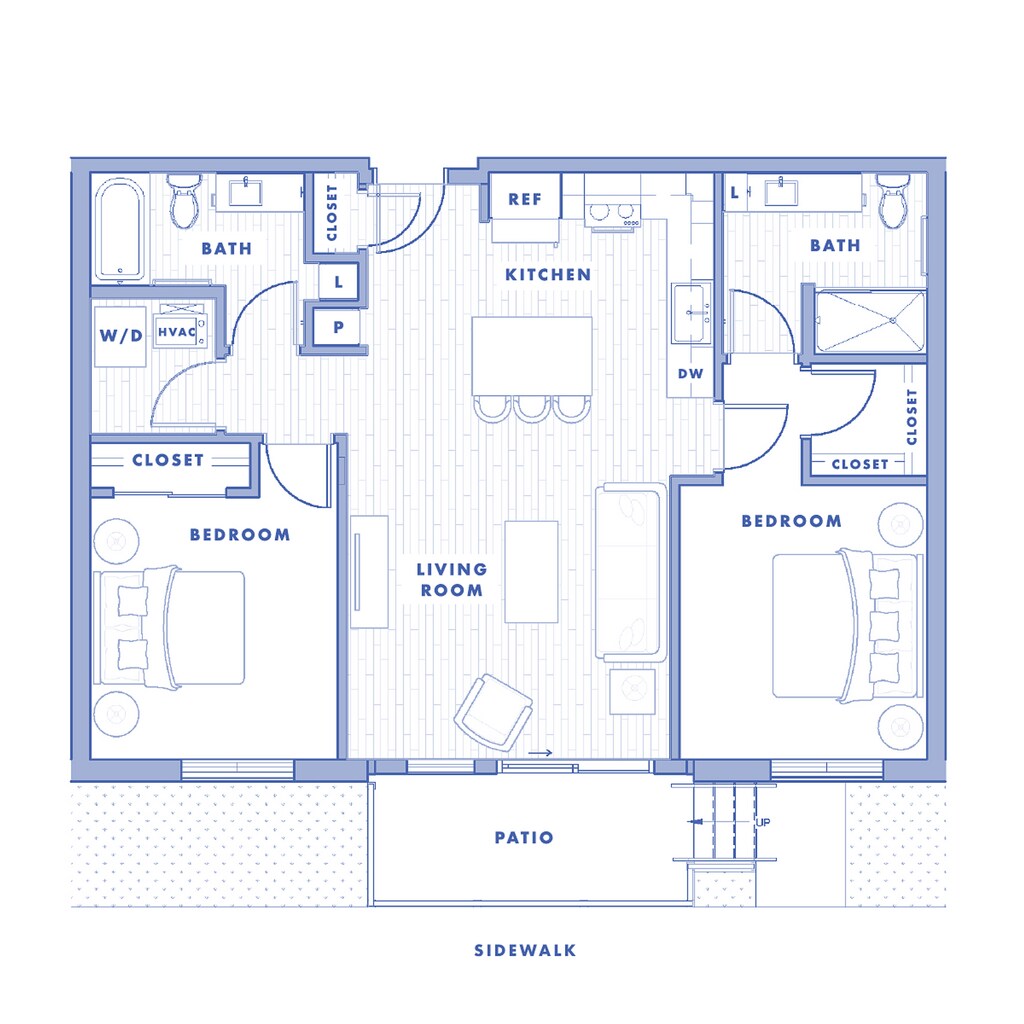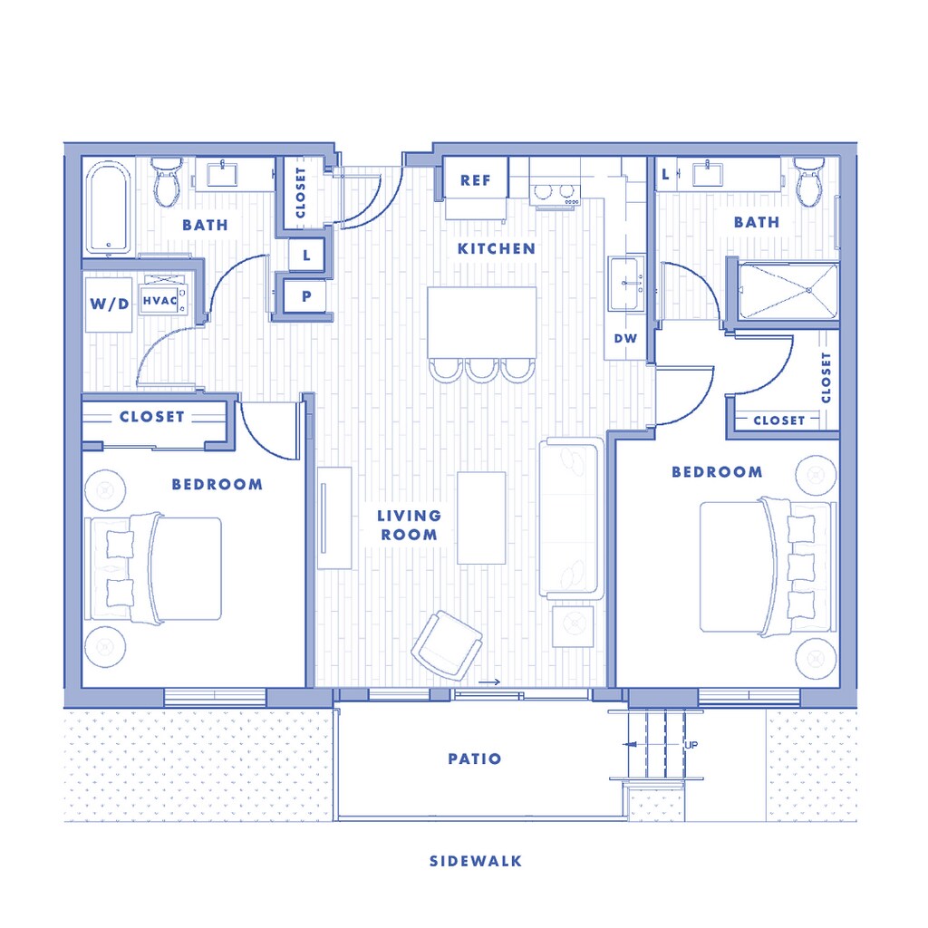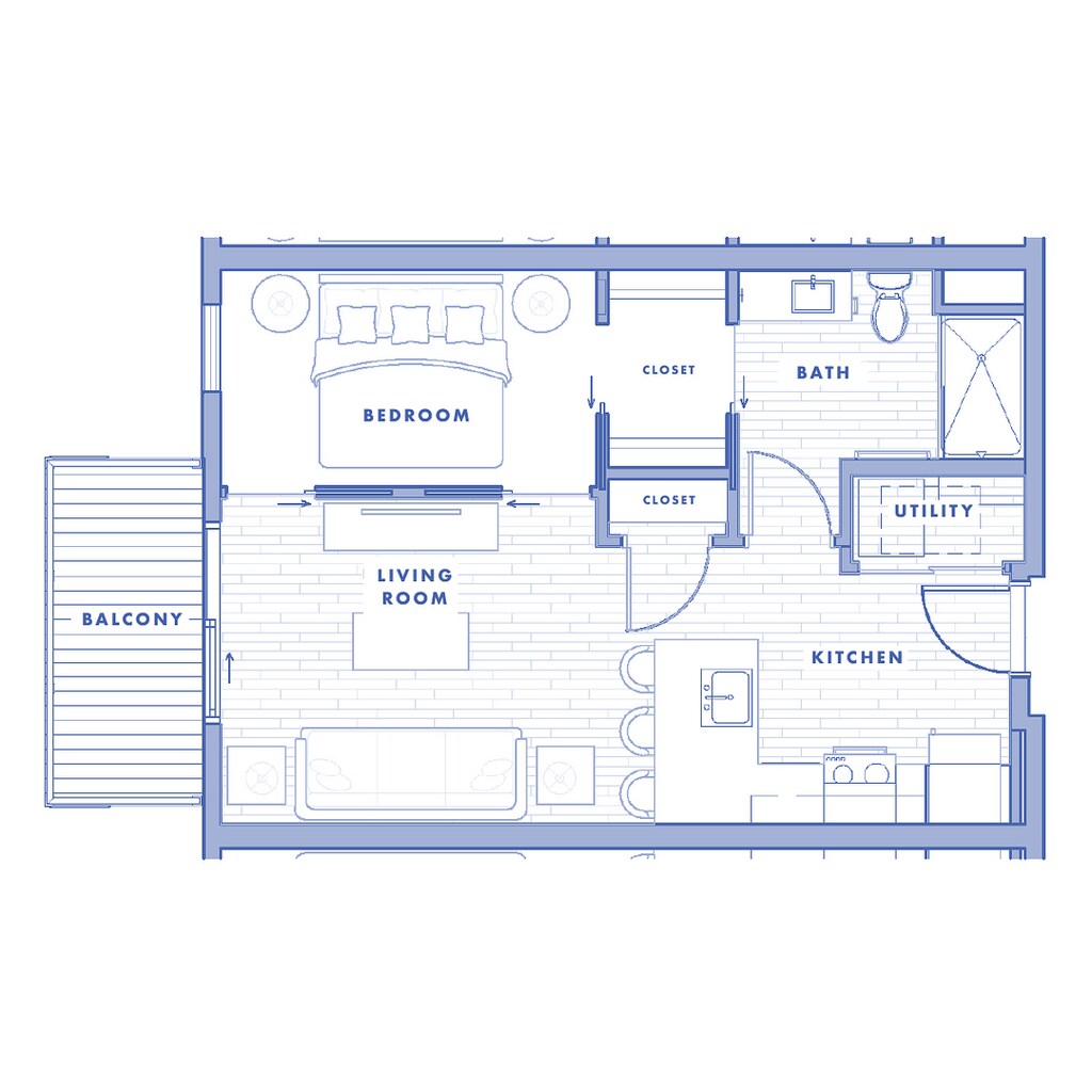 1 Dormitorio, 1 Baño, 754 pies²Disponible AhoraGalería del Modelo