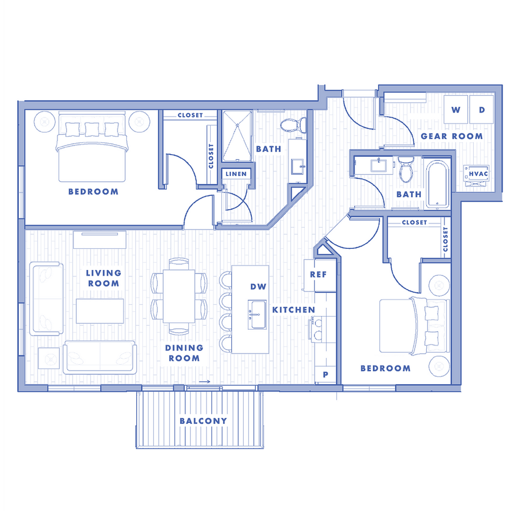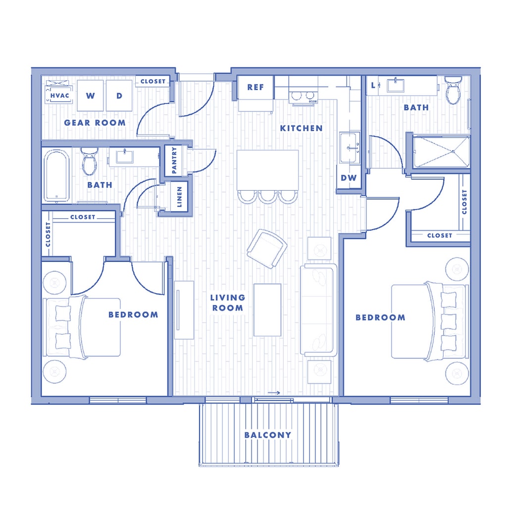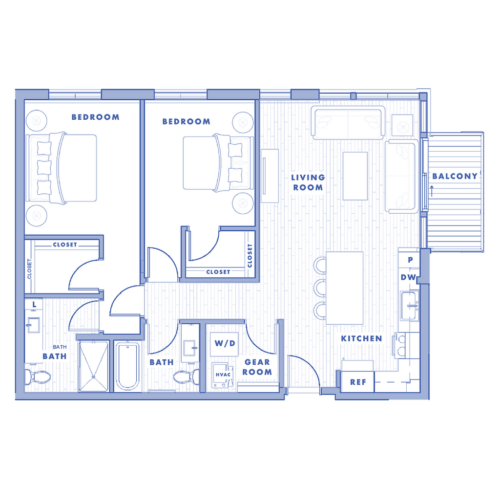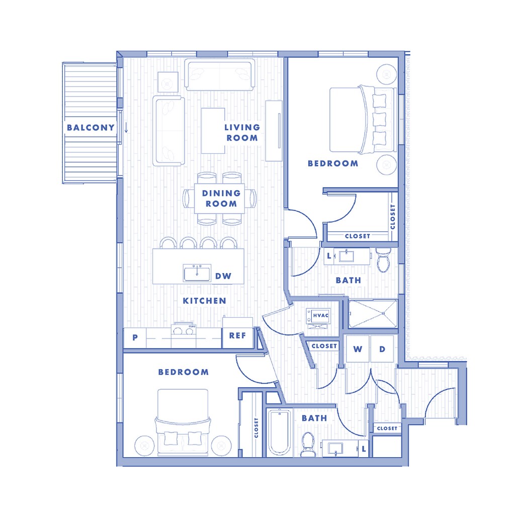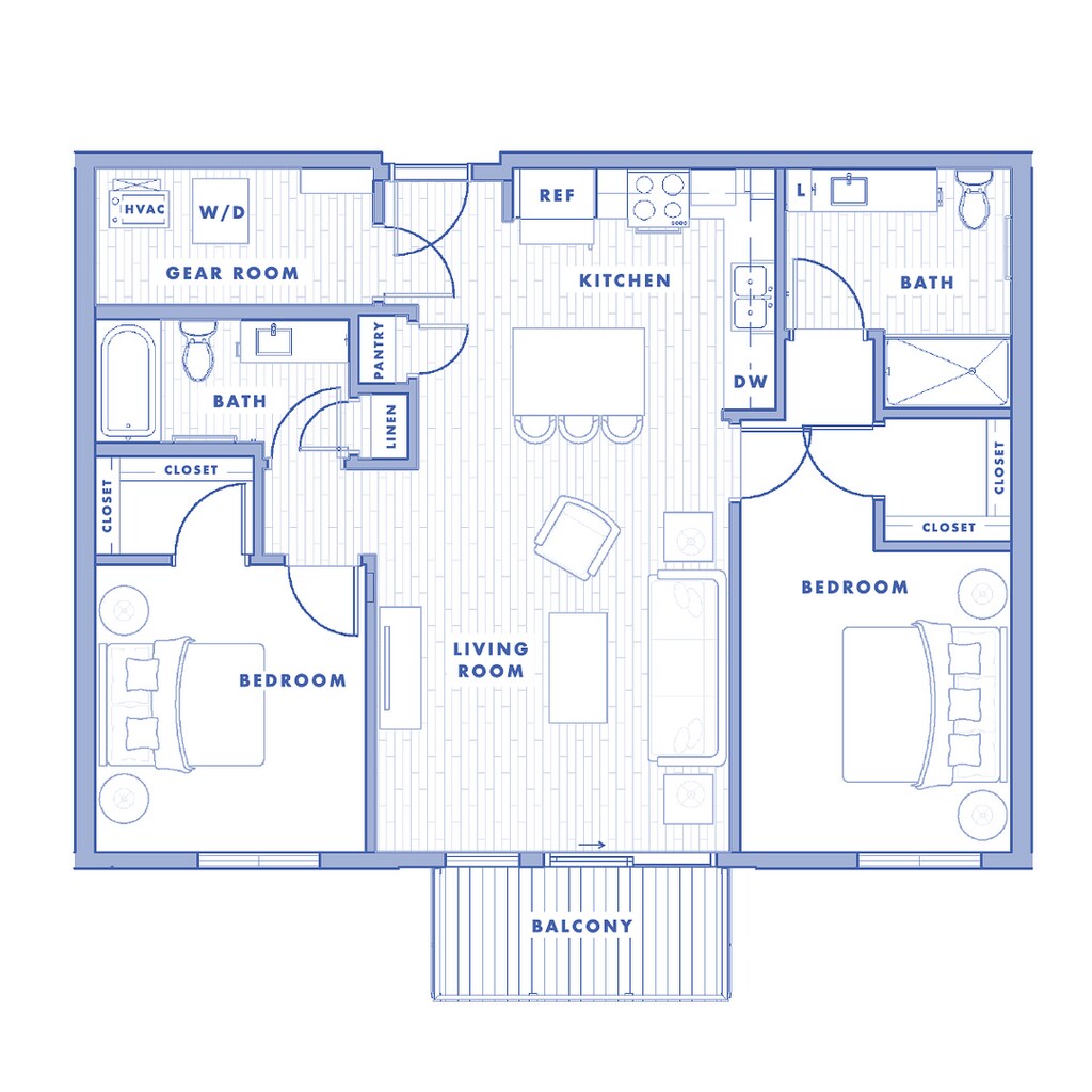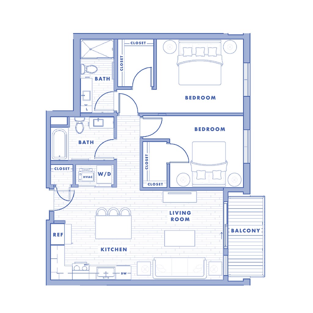 1 Dormitorio, 1 Baño, 754 pies²Disponible AhoraGalería del Modelo