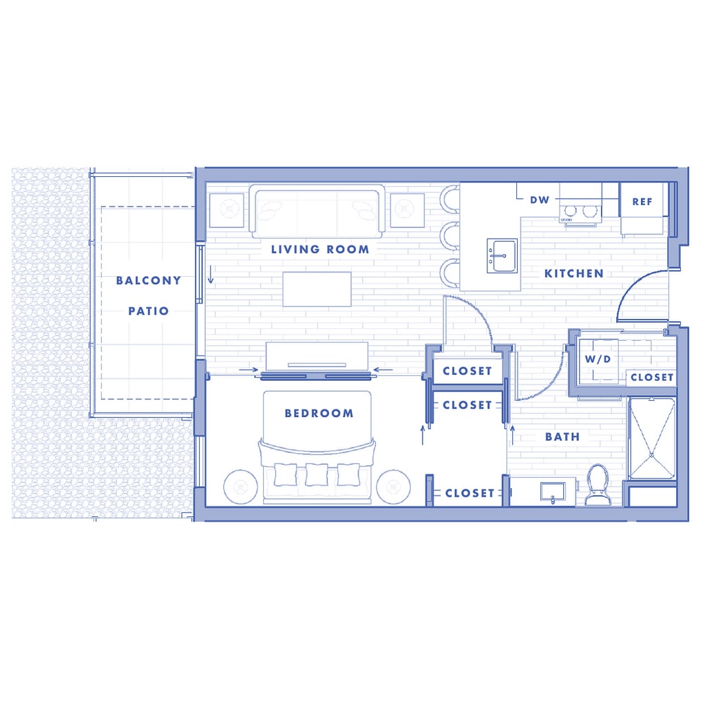 1 Dormitorio, 1 Baño, 754 pies²Disponible Nov 1Galería del Modelo
