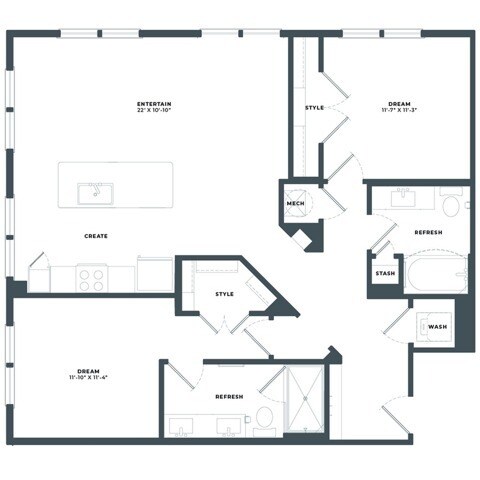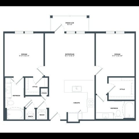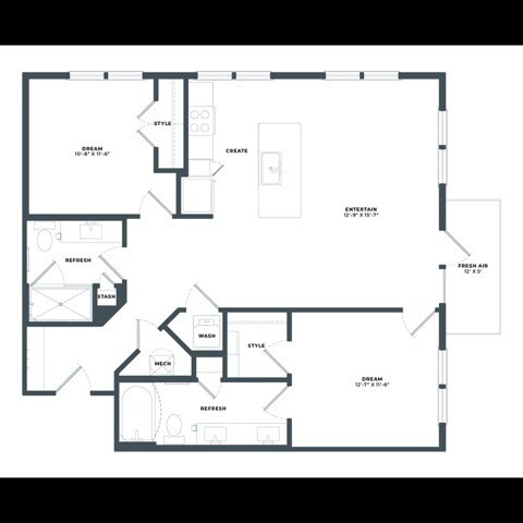 Modelo de apartamento: A3Desde $1,5911 Dormitorio, 1 Baño, 634-660 sq ftDisponible Ahora![]()