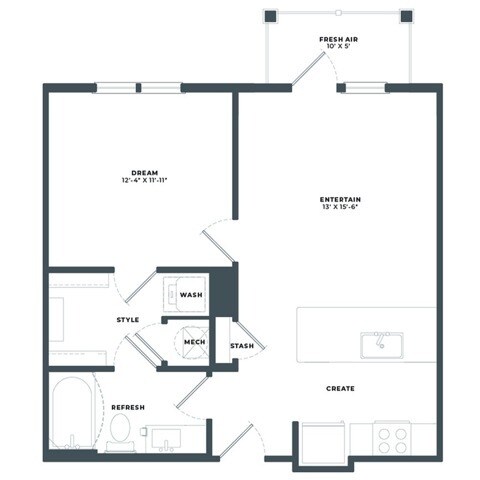 Estudio, 1 Baño, 443-480 pies²Disponible AhoraGalería del Modelo