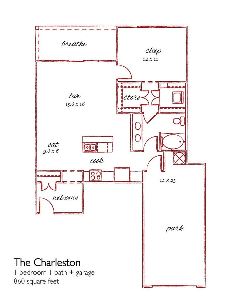 Modelo de apartamento: The Charleston$1,4091 Dormitorio, 1 Baño, 860 sq ftDisponible December 17, 2025![]()