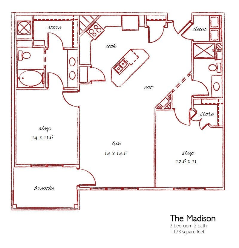 1 Dormitorio, 1.5 Baños, 1082 pies²Disponible AhoraEl más grandeEsta opción tiene las unidades más grandes para este modeloGalería del Modelo