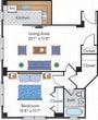 Renovated 1 Bedroom 11 Tier - Plano 1 Unidad de apartamento: 411Modelo de apartamento: Renovated 1 Bedroom 11 Tier$2,5991 Dormitorio, 1 Baño, 618 sq ftDisponible January 9, 2026