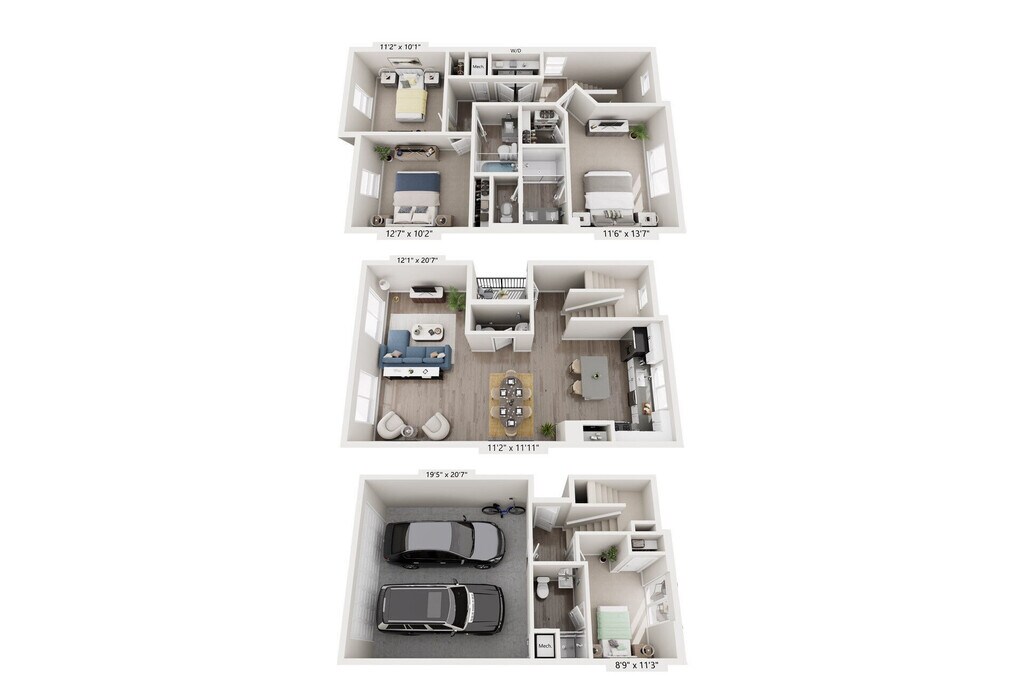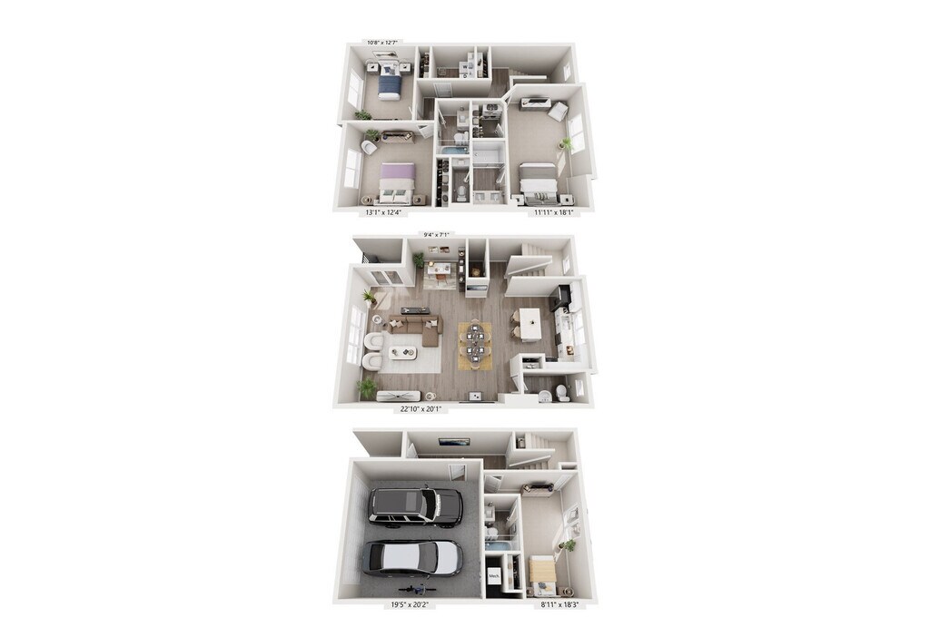 3 Dormitorios, 2.5 Baños, 1198-1220 pies²Disponible AhoraGalería del Modelo