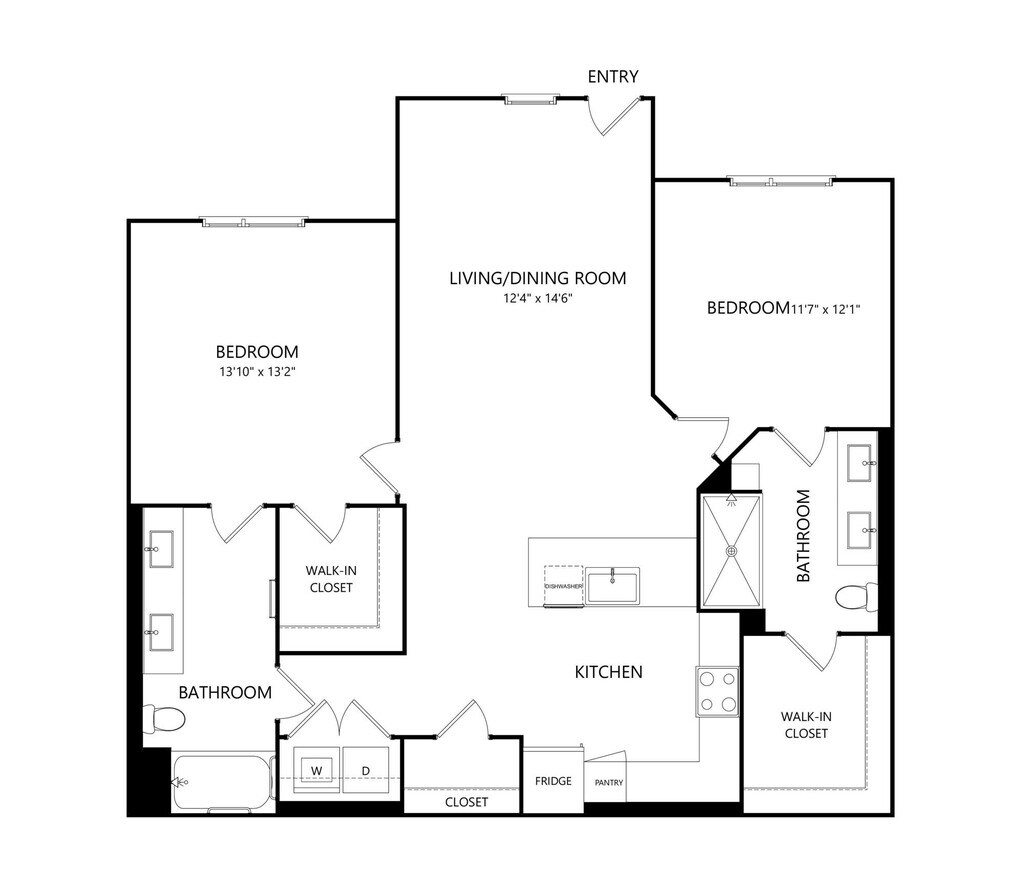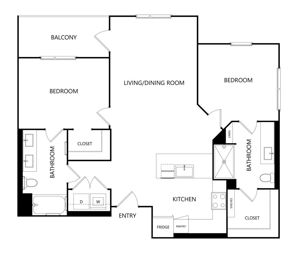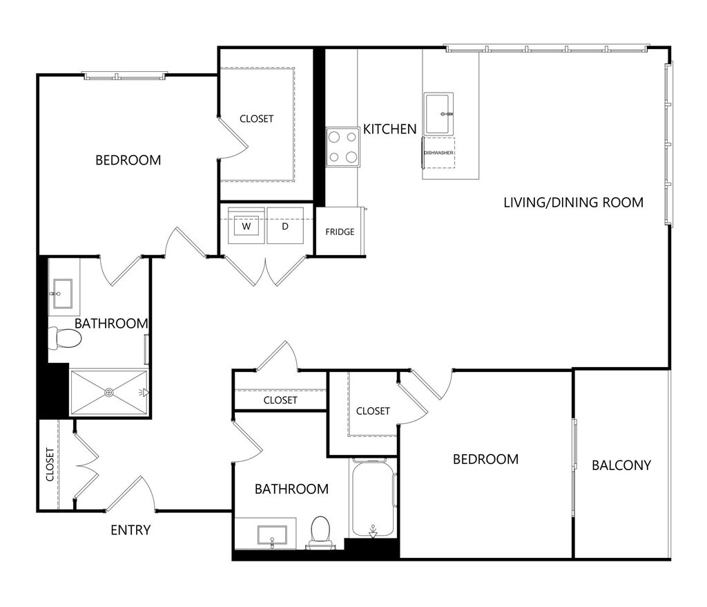 1 Dormitorio, 1 Baño, 648 pies²Disponible AhoraGalería del Modelo