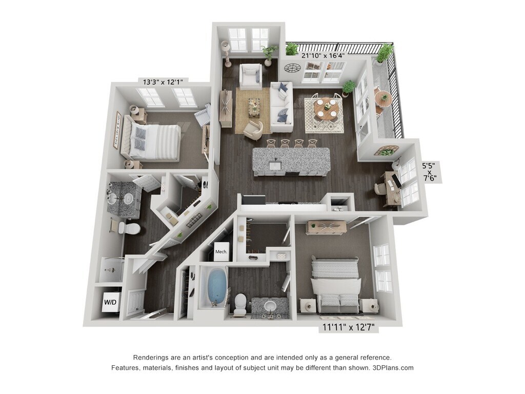 Modelo de apartamento: B3Desde $2,3502 Dormitorios, 2 Baños, 1215 sq ftDisponible Ahora![]()