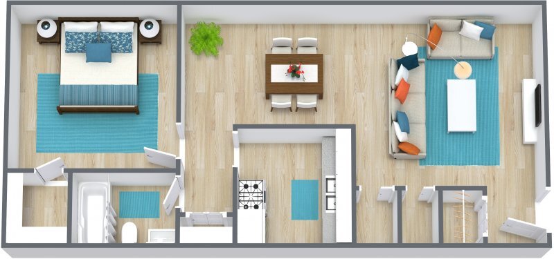 1 Dormitorio, 1 Baño, 700 pies²Galería del Modelo