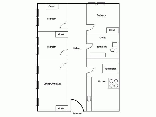 Modelo de apartamento: 3BR/1BA PlusLlame para Precios3 Dormitorios, 1 Baño, 1580 sq ftNo Disponible![]()
