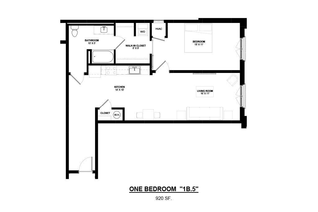 1 Dormitorio, 1 Baño, 920 pies²El más grandeEsta opción tiene las unidades más grandes para este modeloGalería del Modelo