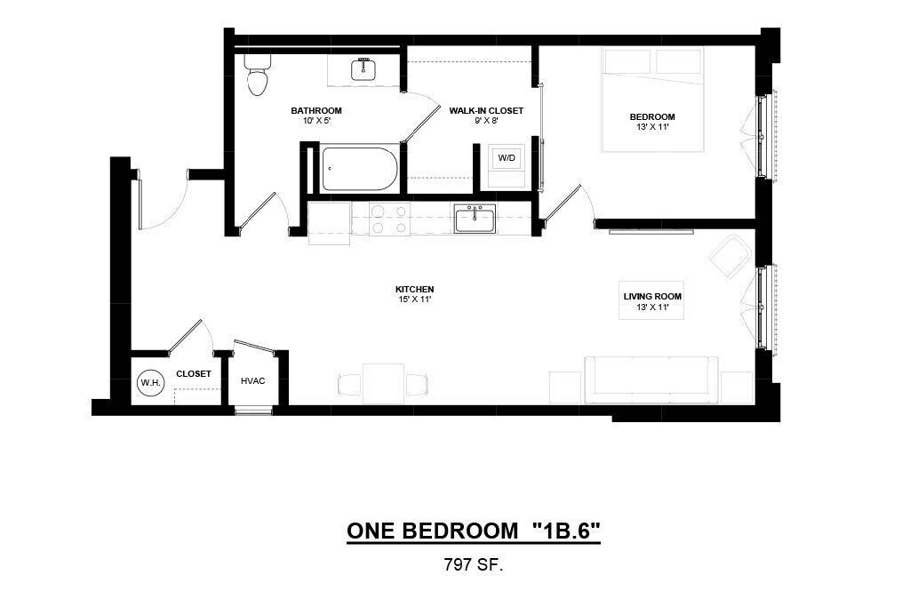 Modelo de apartamento: 1 Bed Side w/JuietteLlame para Precios1 Dormitorio, 1 Baño, 797 sq ftNo Disponible![]()
