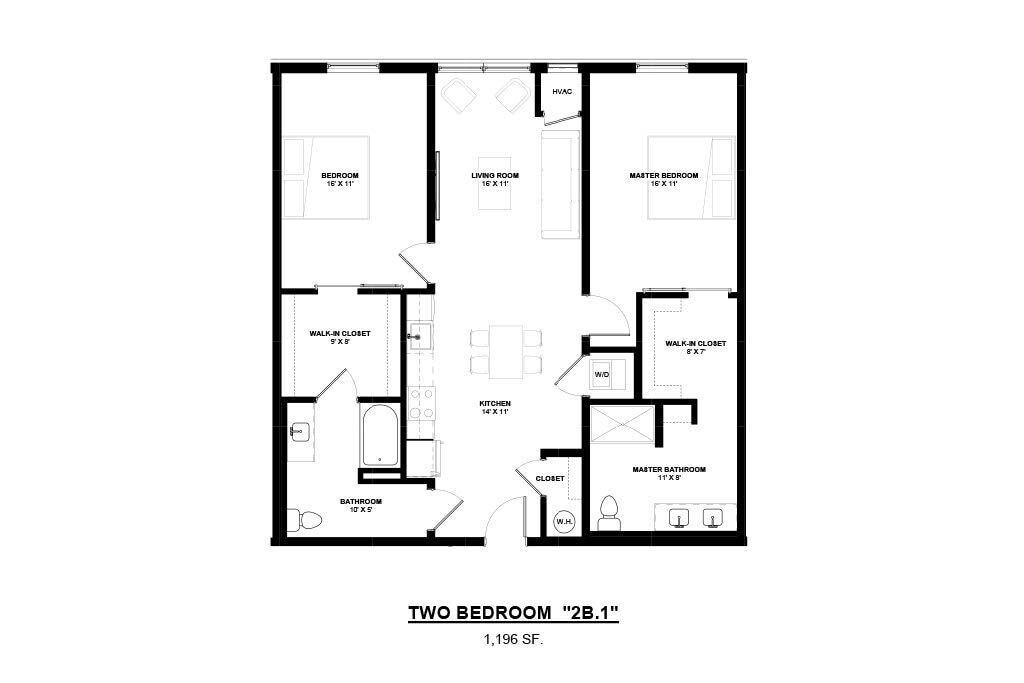 2 Bed/2 Bath - Plano 1 Unidad de apartamento: 205Modelo de apartamento: 2 Bed/2 Bath$2,3102 Dormitorios, 2 Baños, 1196 sq ftDisponible March 14, 20262 Bedroom Center