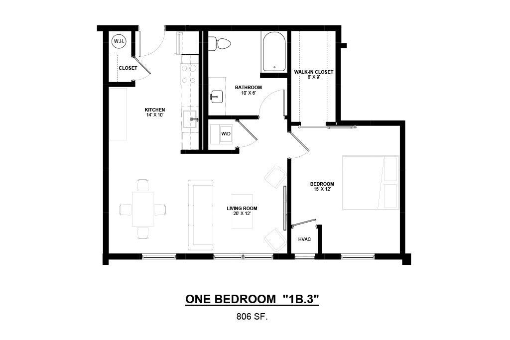 1 Dormitorio, 1 Baño, 806 pies²Galería del Modelo