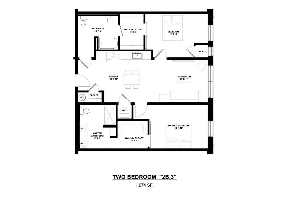 Modelo de apartamento: 2 Bedroom CenterLlame para Precios2 Dormitorios, 2 Baños, 1074 sq ftNo Disponible![]()