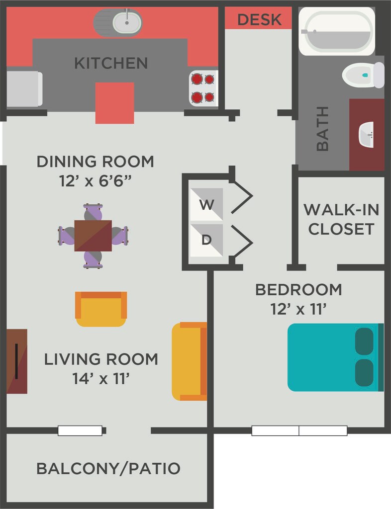 1 Dormitorio, 1 Baño, 797 pies²Disponible AhoraGalería del Modelo