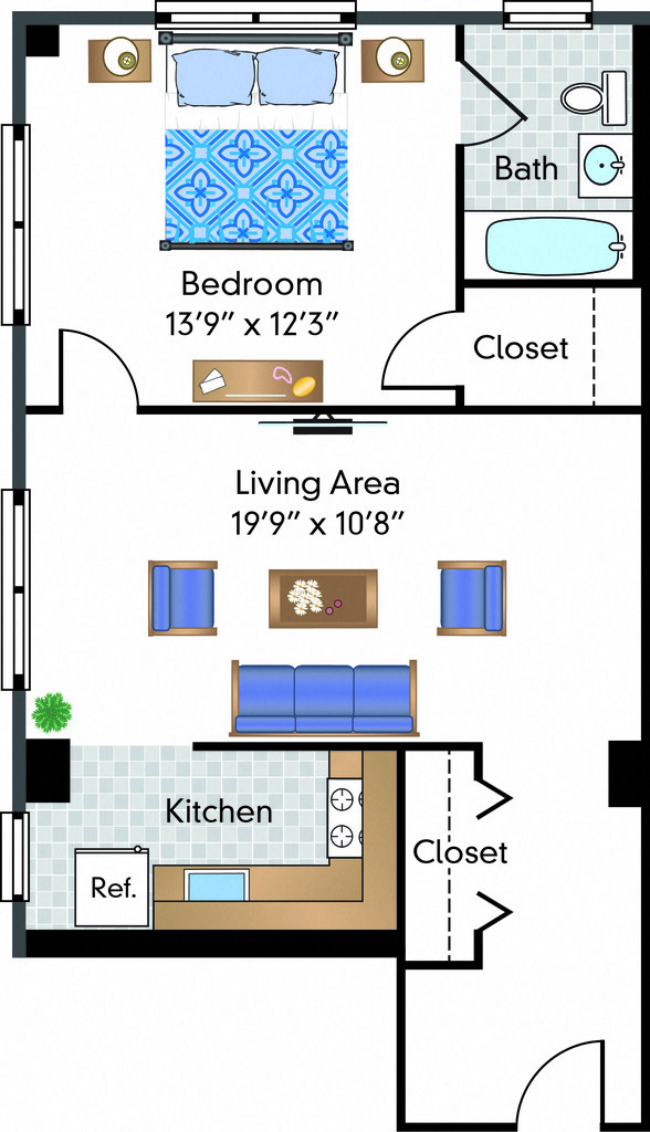 Modelo de apartamento: Renovated Studio 05 TierEstudio, 1 Baño, 225 sq ftDisponible AhoraRenovated Studio 05 Tier - Plano 1 Unidad de apartamento: 405Modelo de apartamento: Renovated Studio 05 TierEstudio, 1 Baño, 225 sq ftDisponible AhoraRenovated Studio 05 Tier