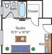 Estudio, 1 Baño, 225 pies²Disponible AhoraGalería del Modelo