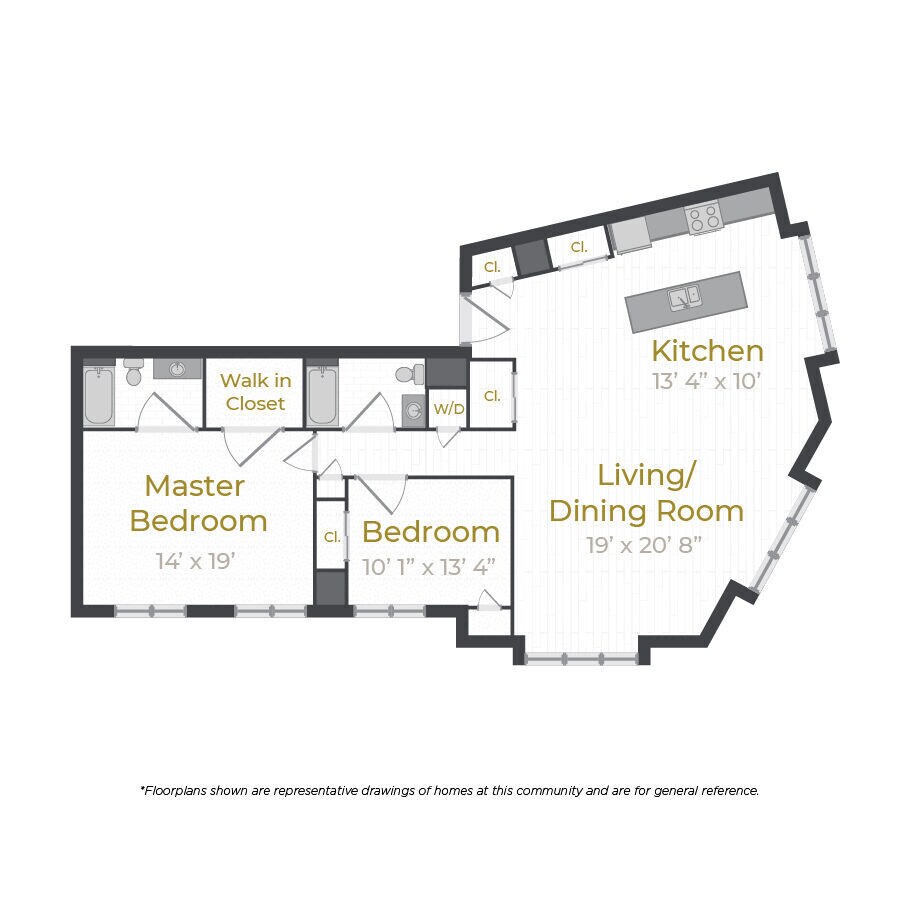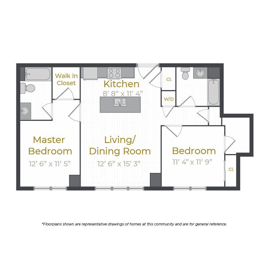 Modelo de apartamento: 2F$5,0532 Dormitorios, 2 Baños, 1663 sq ftNo Disponible![]()