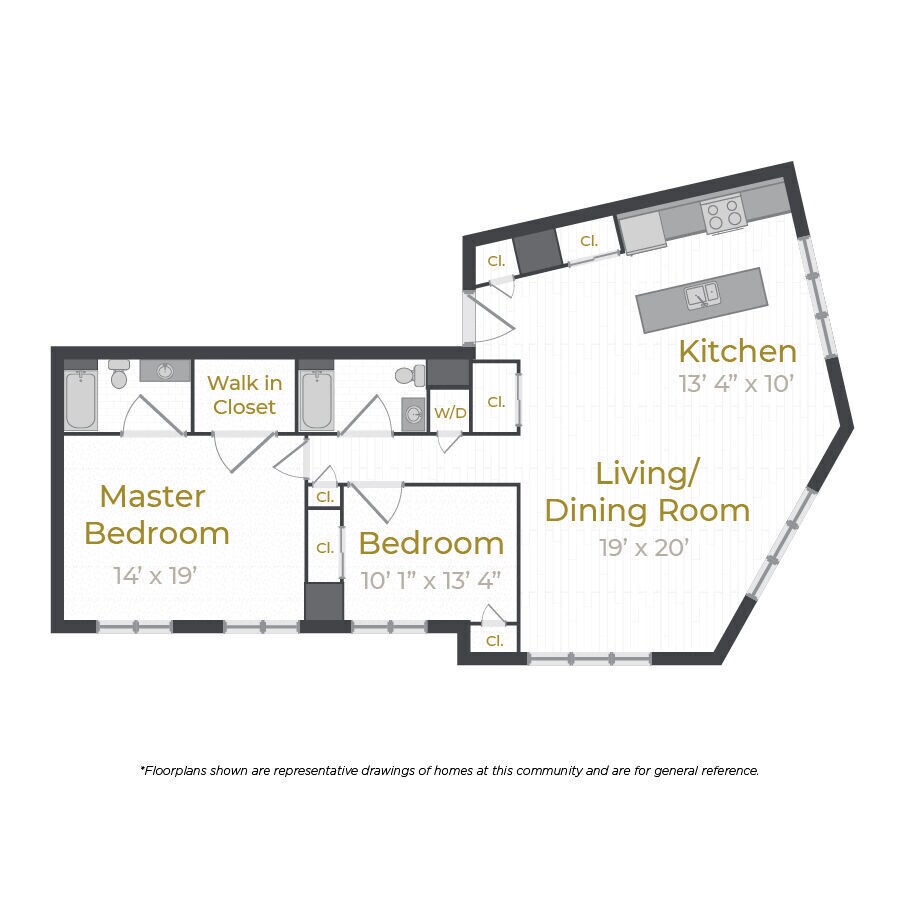 Modelo de apartamento: 2D$3,5432 Dormitorios, 2 Baños, 1025 sq ftNo Disponible![]()