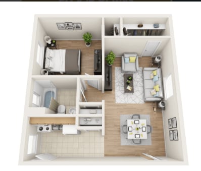 1 Dormitorio, 1 Baño, 650 pies²Disponible AhoraGalería del Modelo