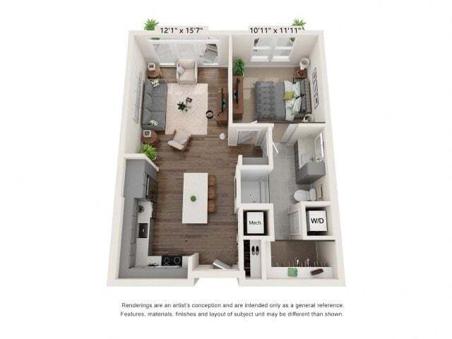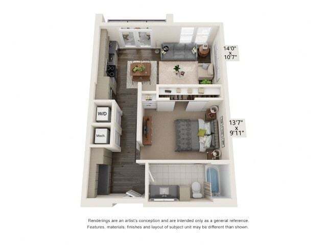 Modelo de apartamento: Studio E1Estudio, 1 Baño, 660-696 sq ftDisponible Ahora![]()