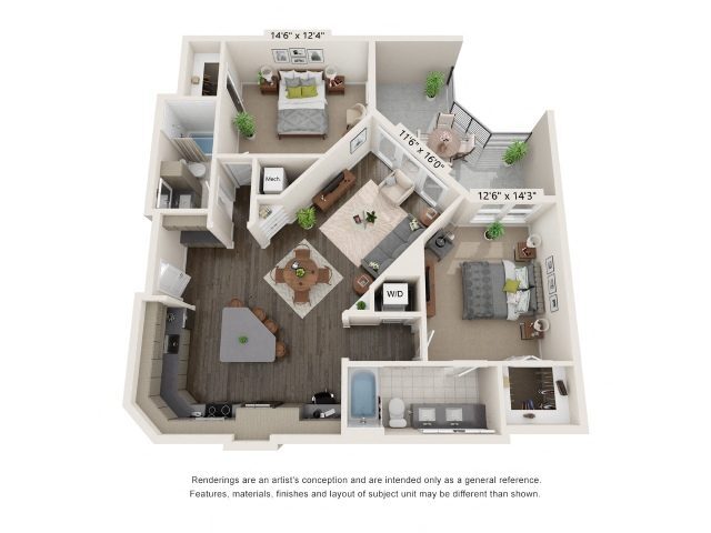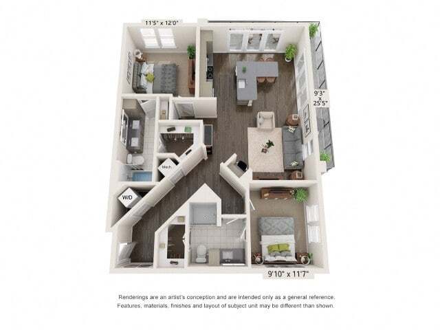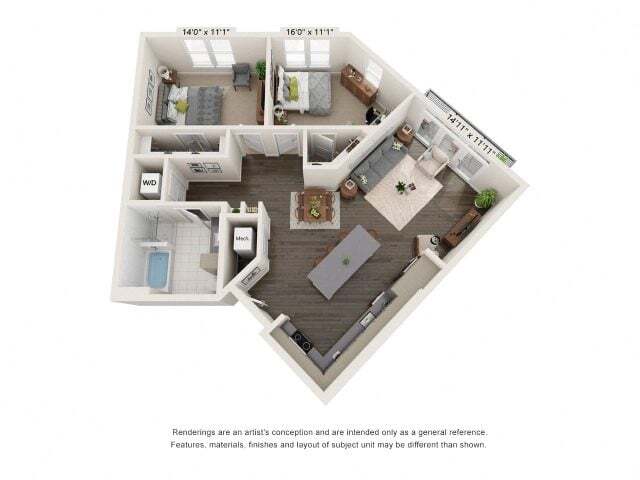 Modelo de apartamento: 1 Bedroom A81 Dormitorio, 1 Baño, 968 sq ftDisponible November 27, 2025![]()