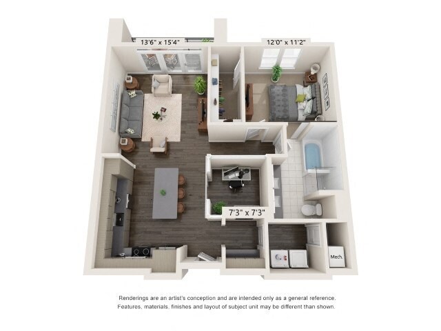 1 Dormitorio, 1 Baño, 780-830 pies²Disponible AhoraGalería del Modelo