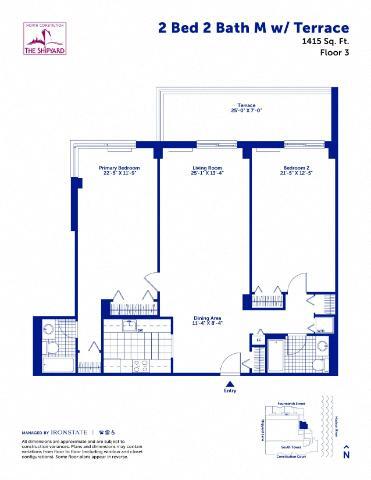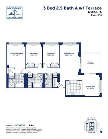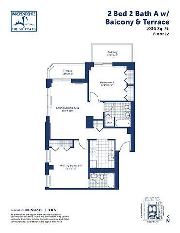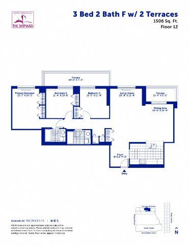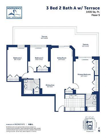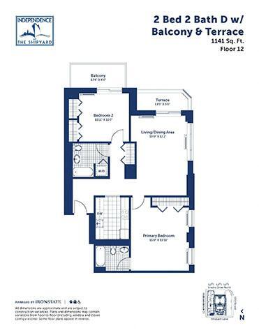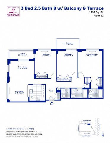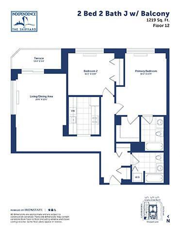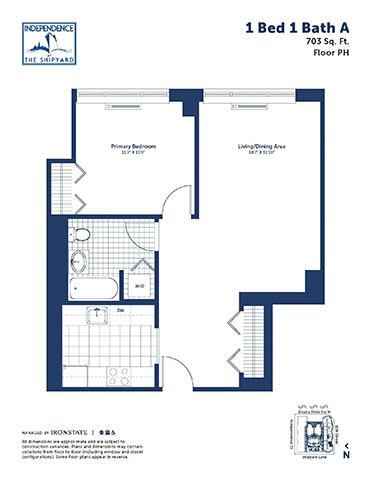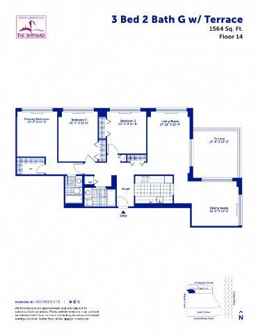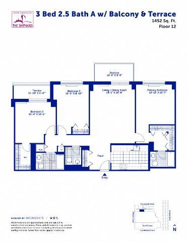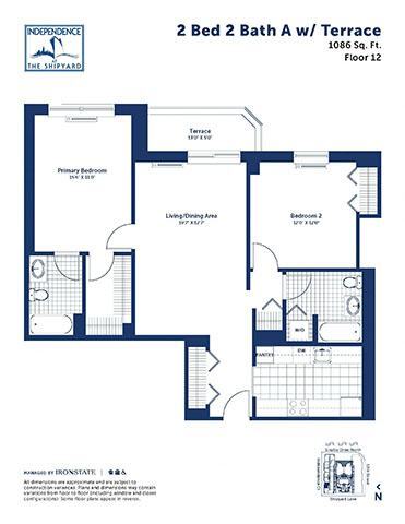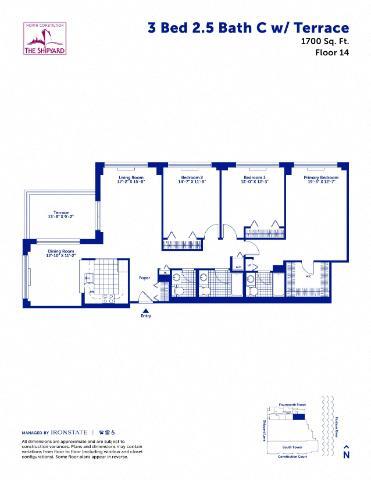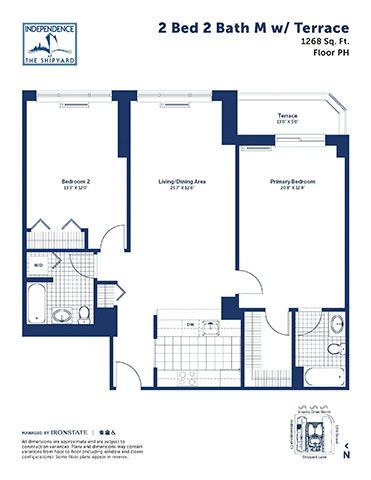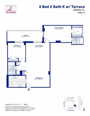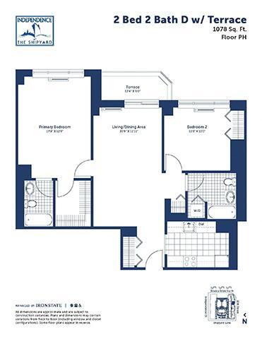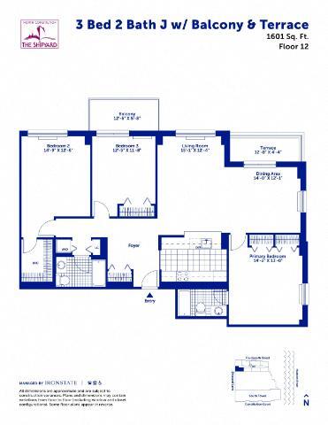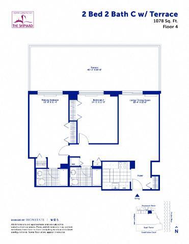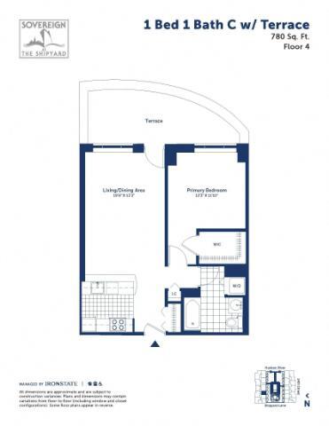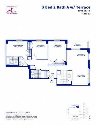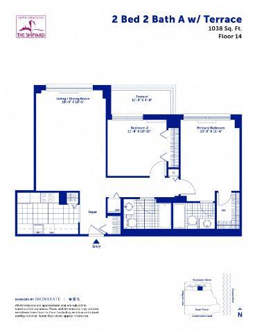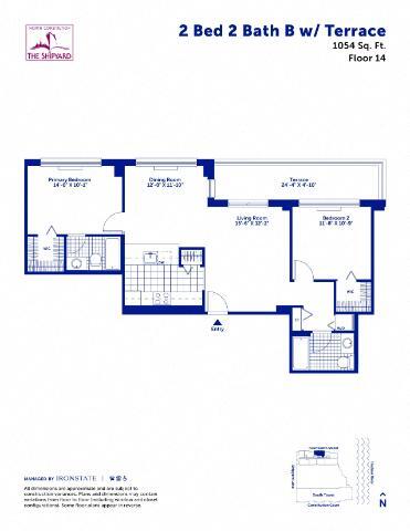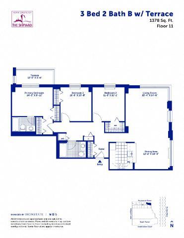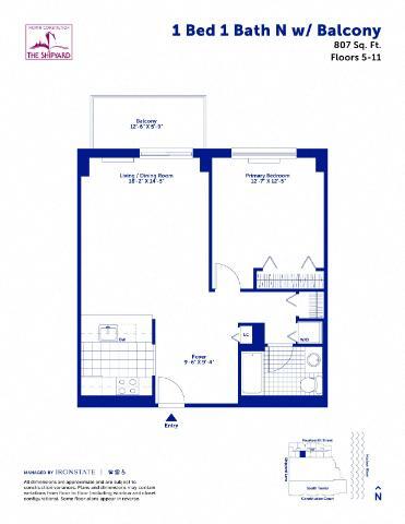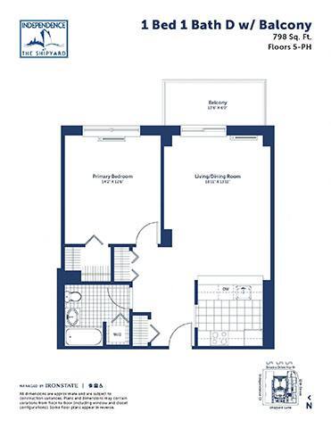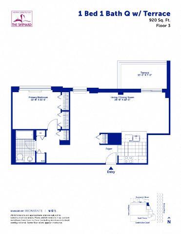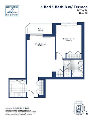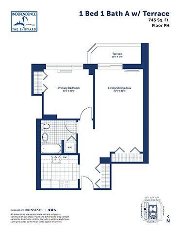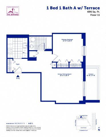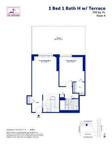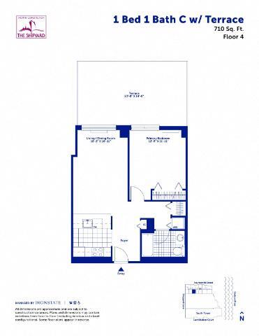 The Berkshire-1 Bed 1 Bath B - Plano 1 The North Constitution-1 Bed 1 Bath A with Terrace