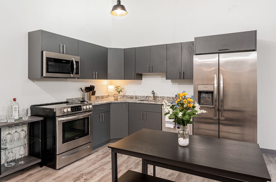 Estas nuevas unidades de loft de uno y dos dormitorios se crearon dentro de una encantadora estructura de acero y ladrillo construida en 1925, que mantiene su importancia histórica en la actualidad. Los Silk Factory Lofts están ubicados en el corazón de Pennsburg, con una gran cantidad de tiendas y restaurantes a pocos pasos. La ubicación está cerca de la autopista de peaje PA y las arterias principales. También se encuentra a corta distancia en automóvil de las principales instituciones educativas y de atención médica, como UPenn, Grandview Hospital, el campus Upper Bucks de Saint Luke, Lehigh, Muhlenberg y DeSales Universities. Las cocinas se completan con encimeras de granito, electrodomésticos de acero inoxidable, lavaplatos y papelera. Cada unidad también tiene su propia lavadora y secadora. El estacionamiento en el hotel y los intercomunicadores de teléfonos inteligentes completan la comodidad de The Silk Factory Lofts.