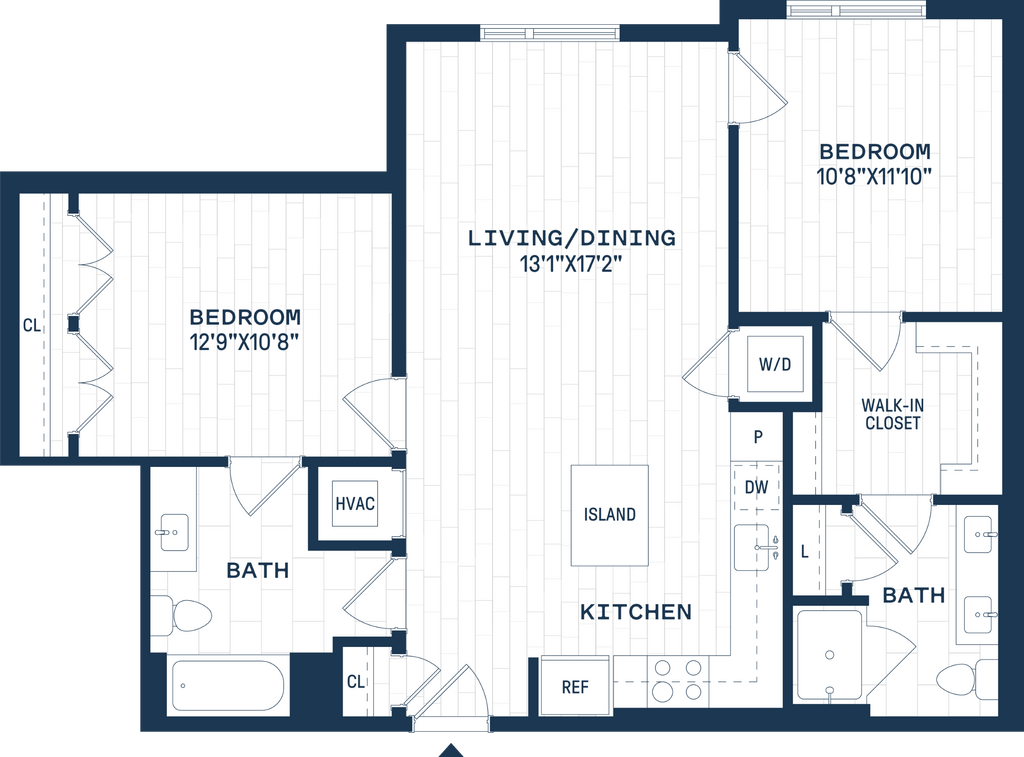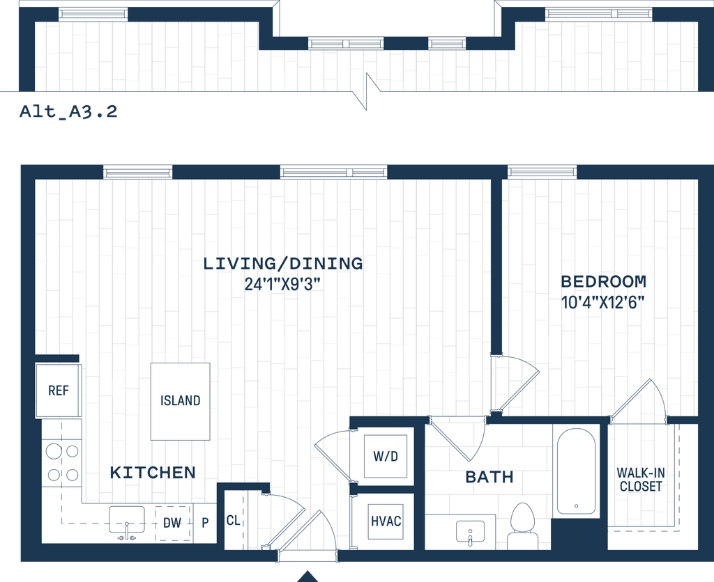 Modelo de apartamento: A1Desde $2,0801 Dormitorio, 1 Baño, 737-750 sq ftDisponible Ahora![]()