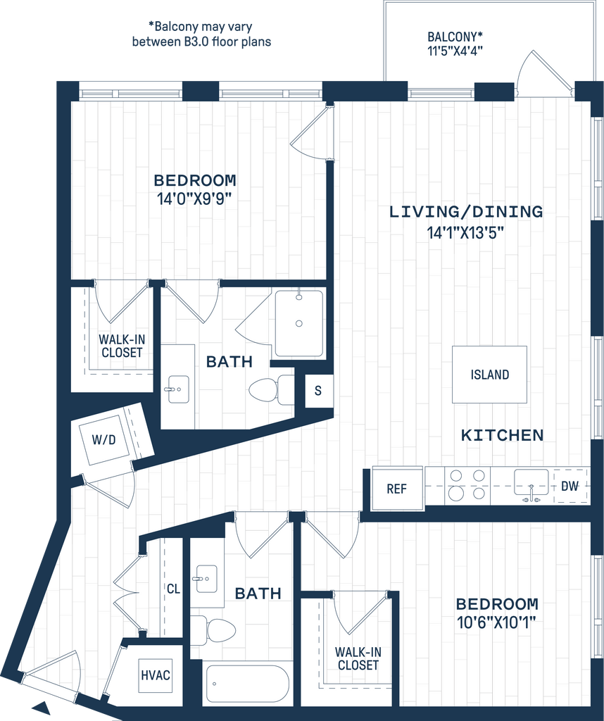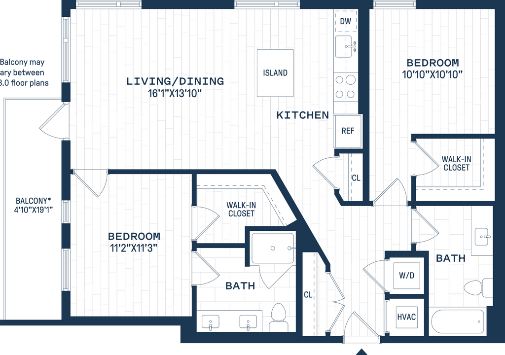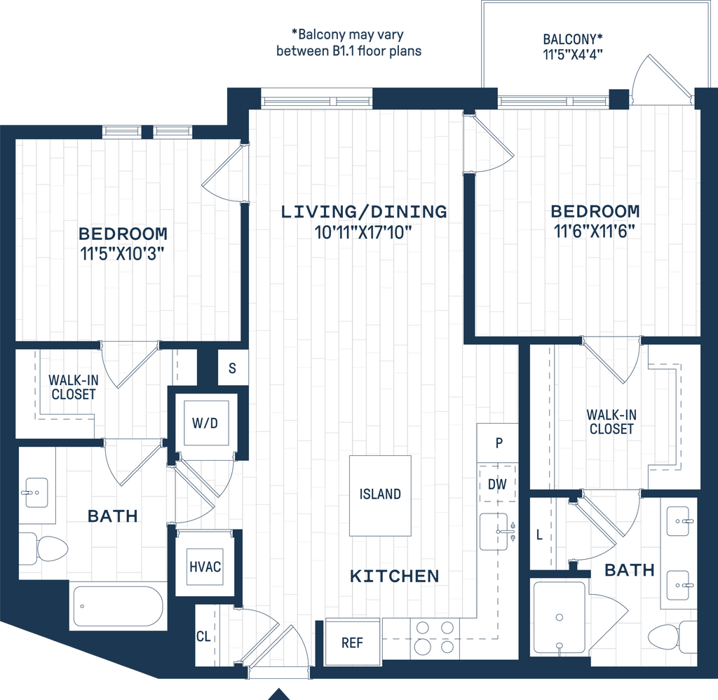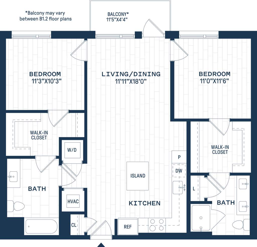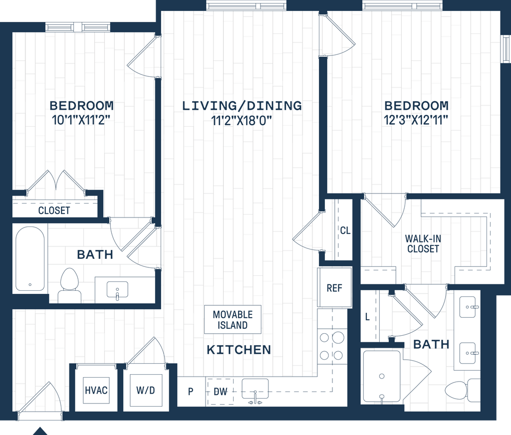 Modelo de apartamento: J2Desde $1,9661 Dormitorio, 1 Baño, 575 sq ftDisponible Ahora![]()