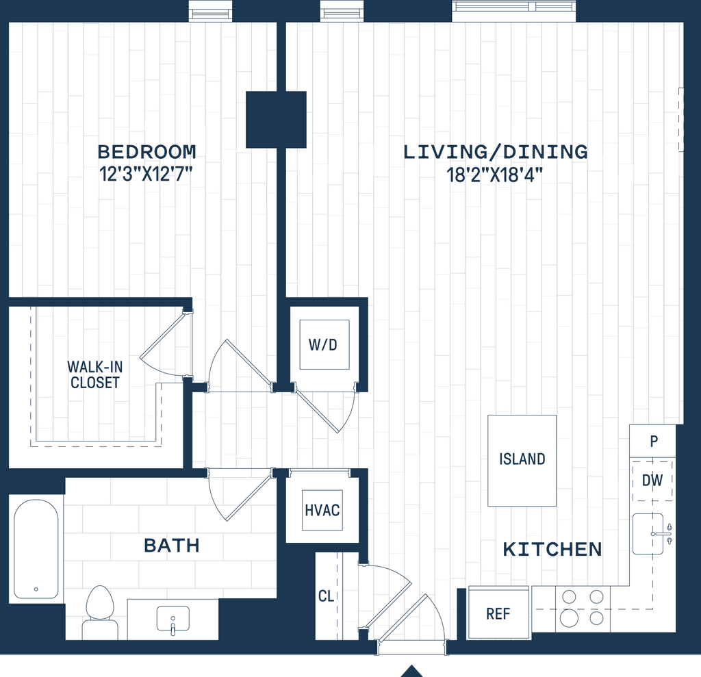 1 Dormitorio, 1 Baño, 575 pies²Disponible AhoraGalería del Modelo