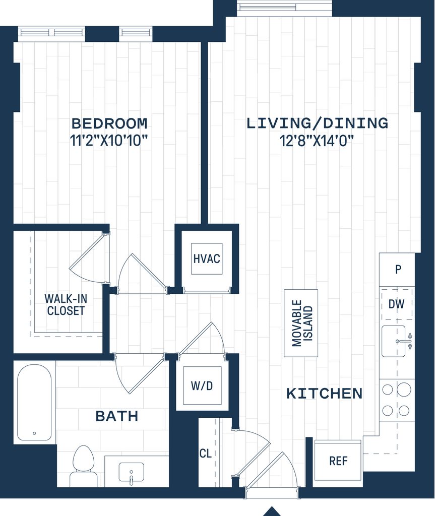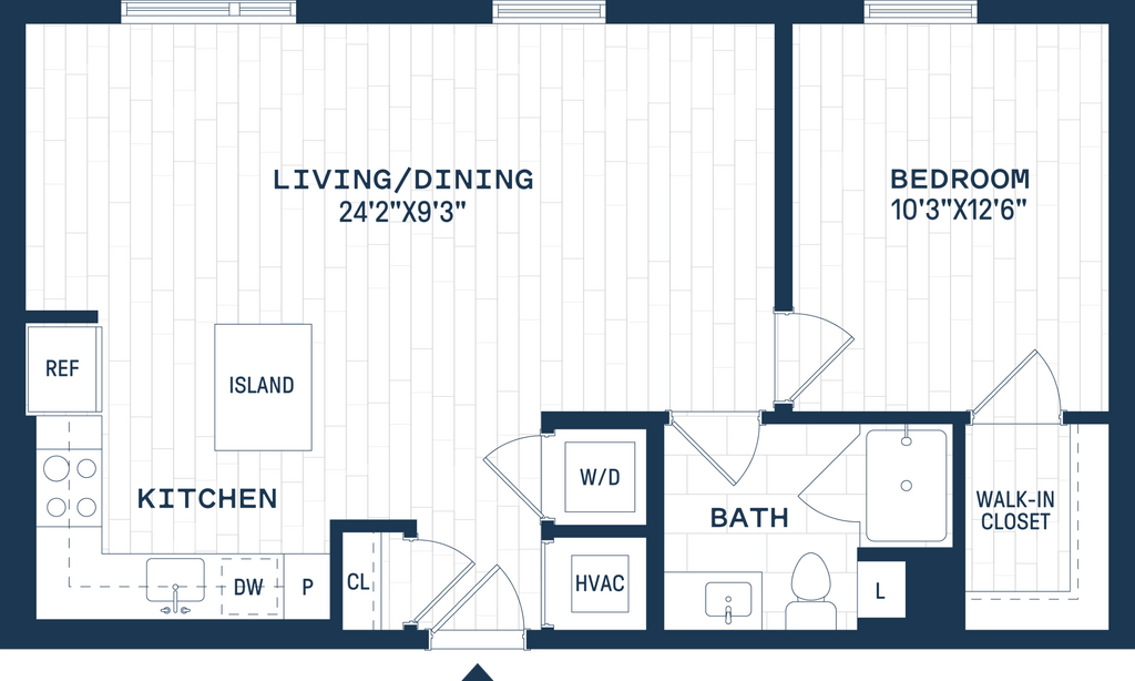 Modelo de apartamento: J1Desde $1,8951 Dormitorio, 1 Baño, 558-570 sq ftDisponible Ahora![]()