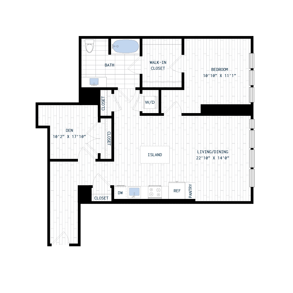 Estudio, 1 Baño, 473-478 pies²Precio Mensual TotalDisponible AhoraEl más baratoEsta opción tiene los precios más bajos para este modeloGalería del Modelo