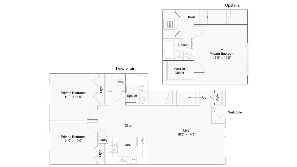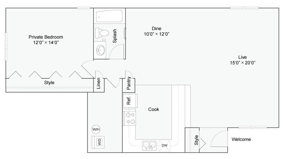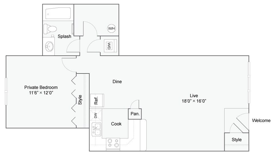 Calhoun A - Reserve - Plano 1 Unidad de apartamento: Full PrivateModelo de apartamento: Calhoun A - Reserve$1,0691 Dormitorio, 1 Baño, up to 700 sq ftDisponible August 21, 2026Calhoun A Renovated - Reserve