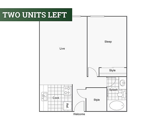 1 Dormitorio, 1 Baño, 600 pies²Disponible AhoraGalería del Modelo