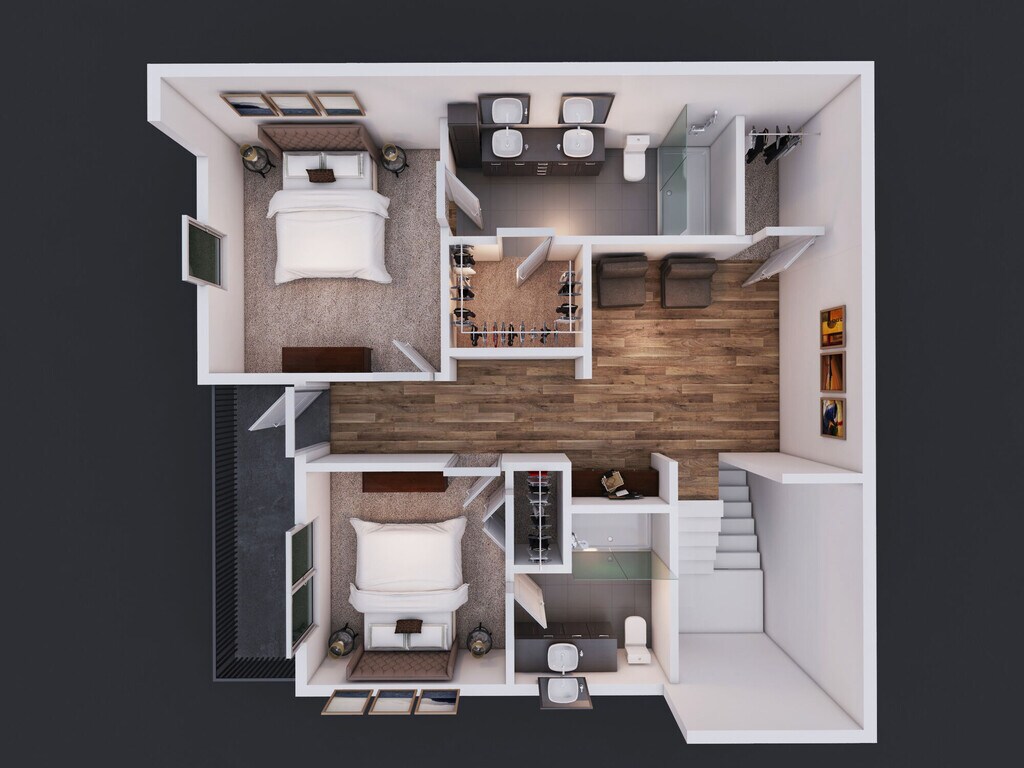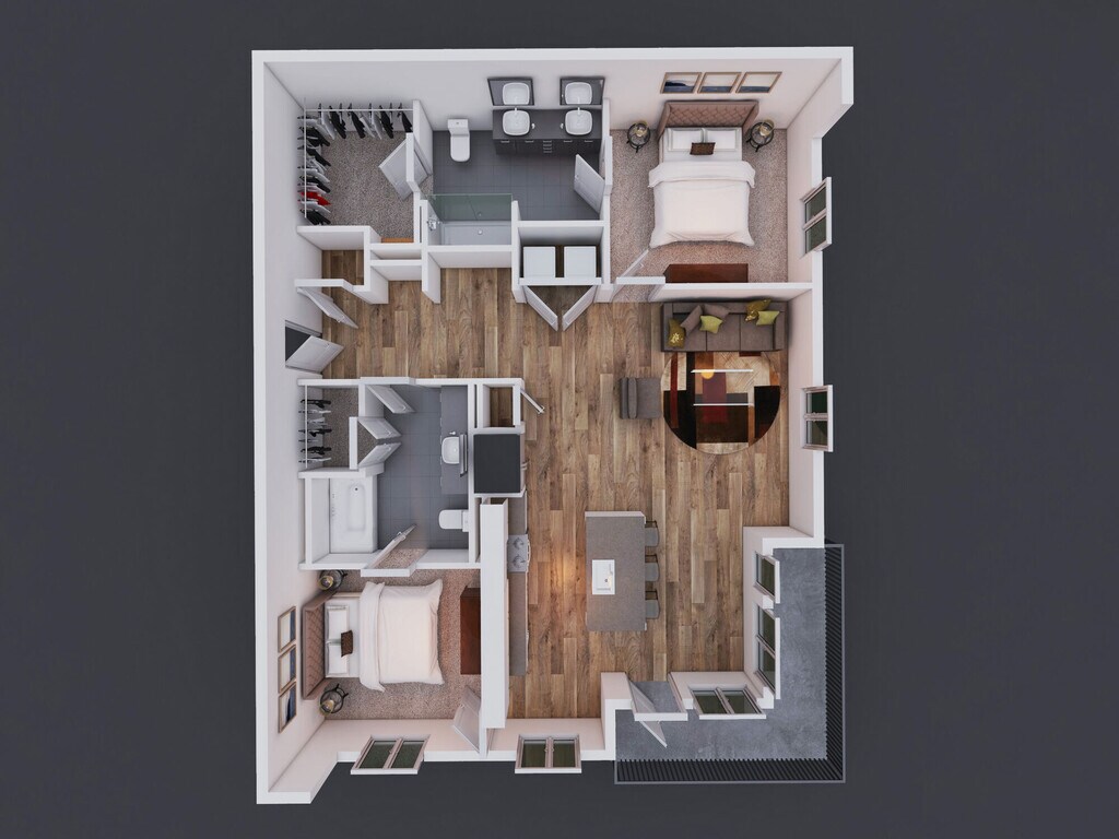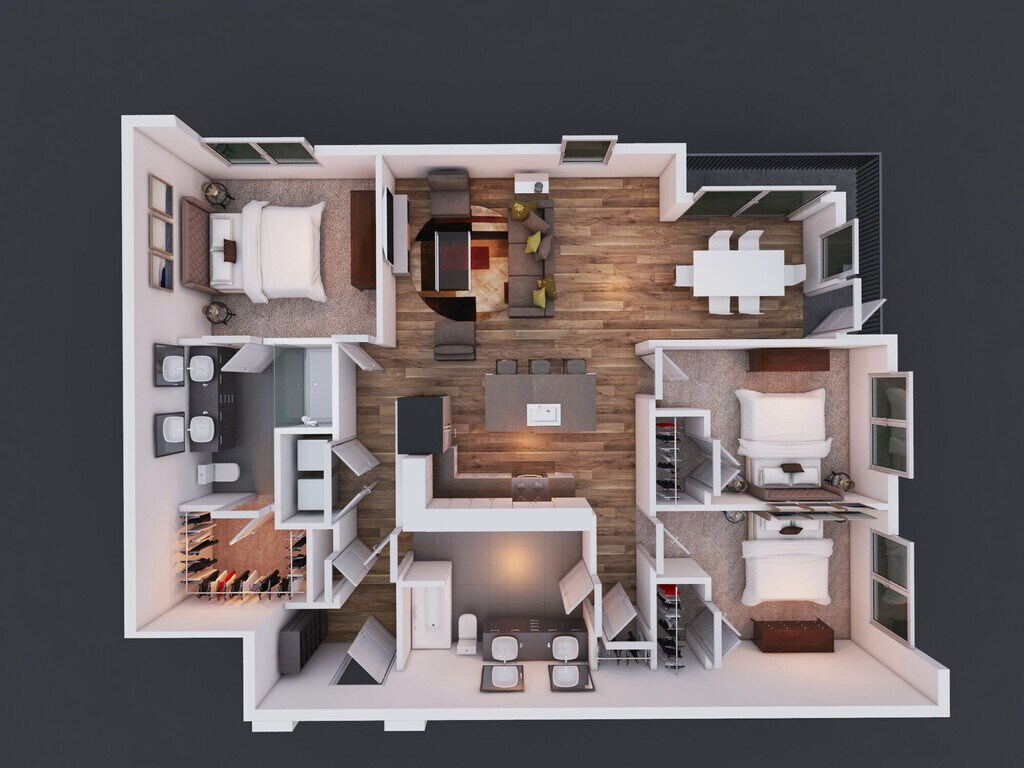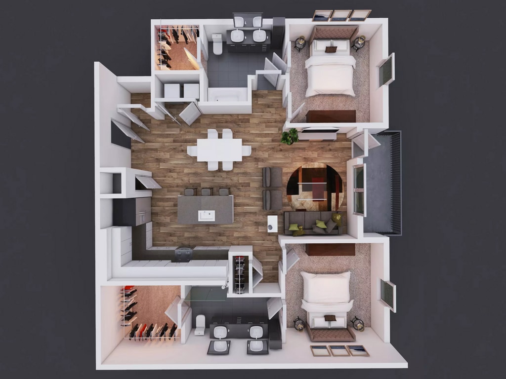 1 Dormitorio, 1 Baño, 747 pies²Disponible AhoraGalería del Modelo