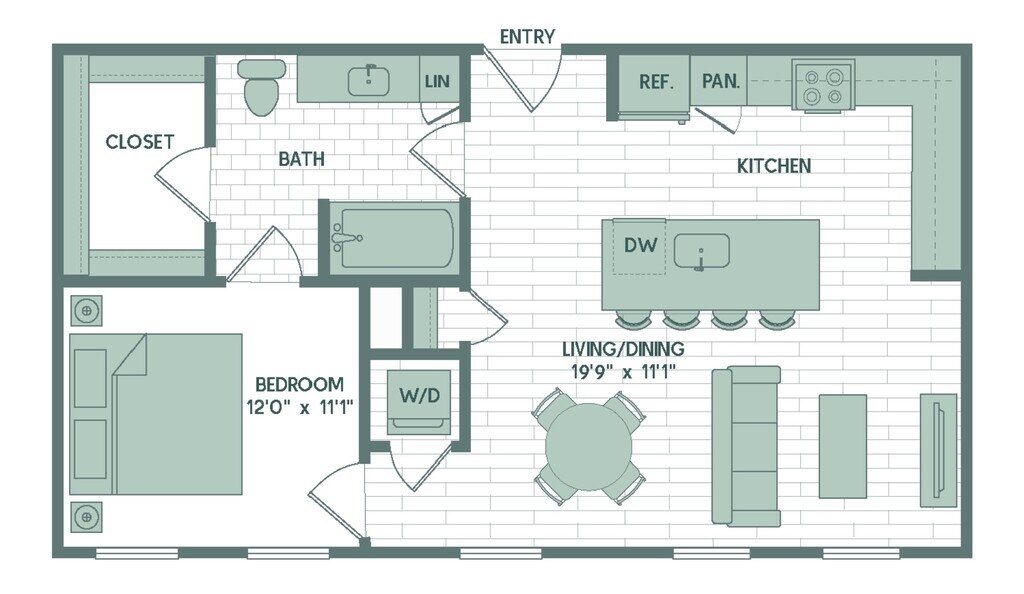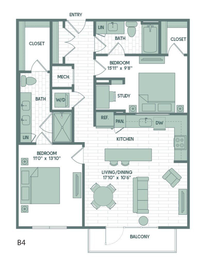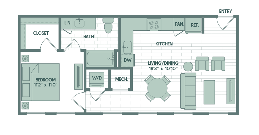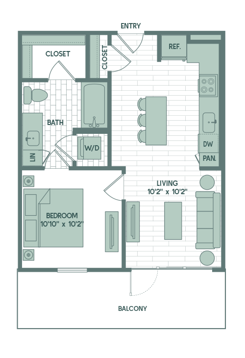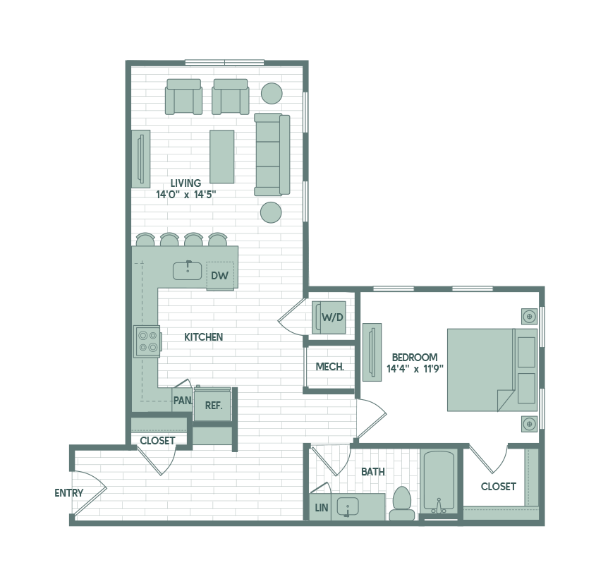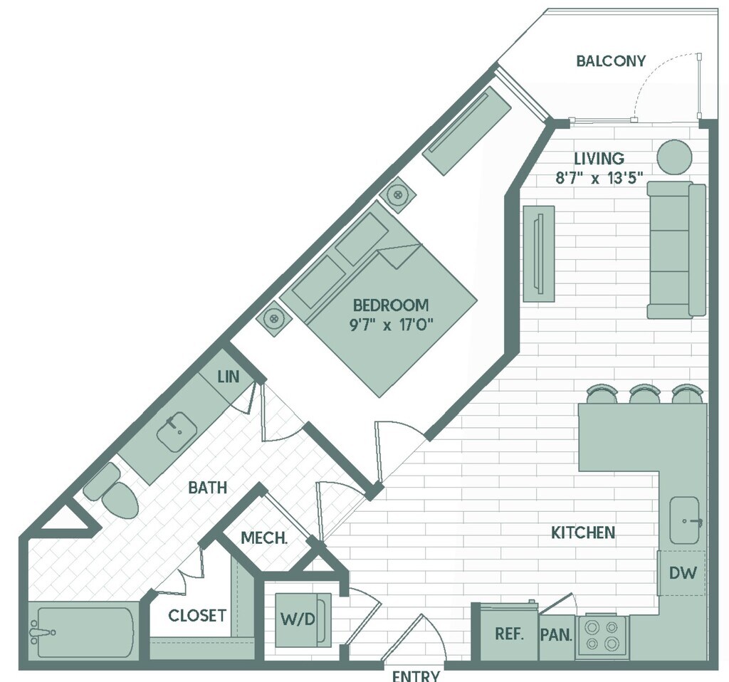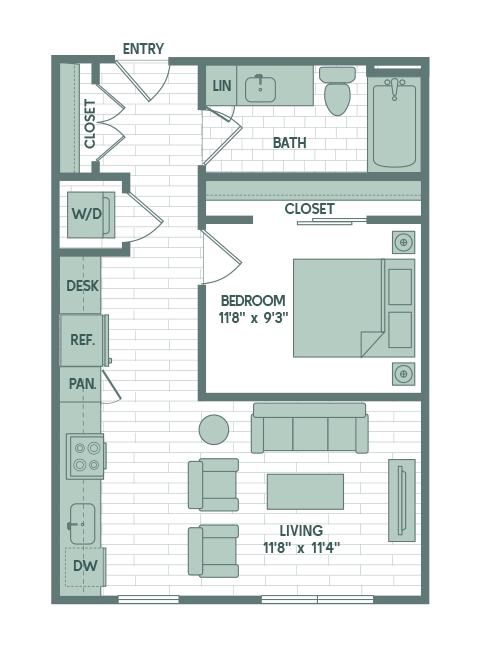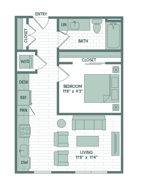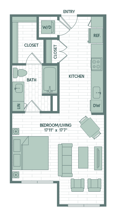 Modelo de apartamento: E1Desde $1,299Estudio, 1 Baño, 489-557 sq ftDisponible Ahora![]()