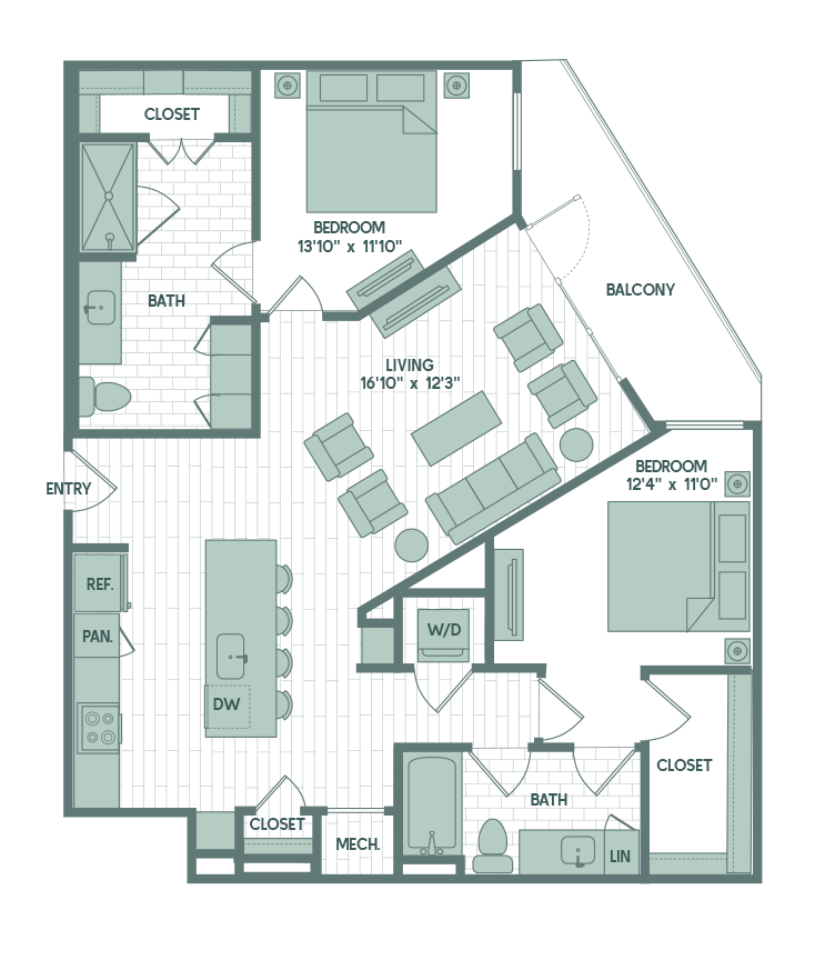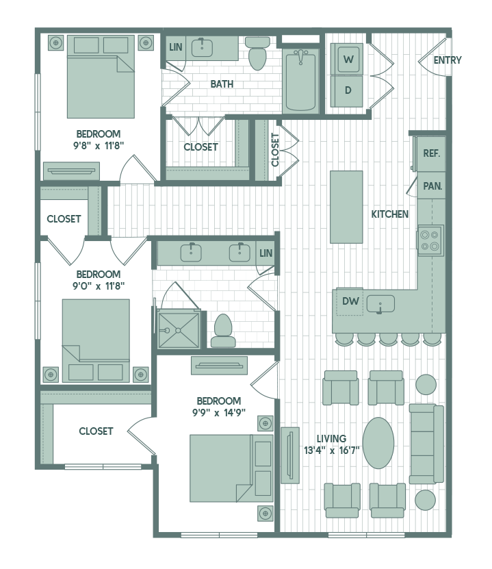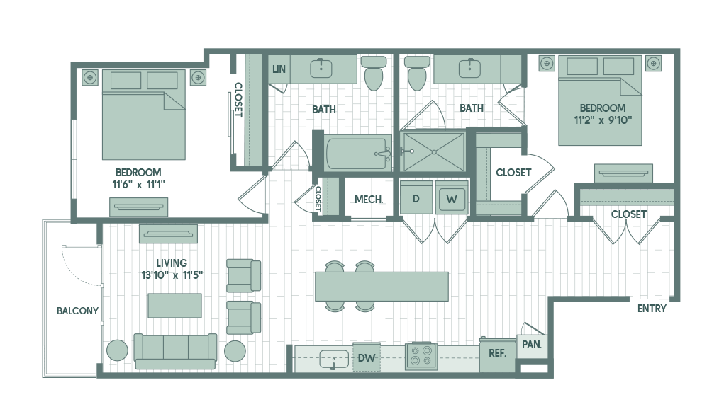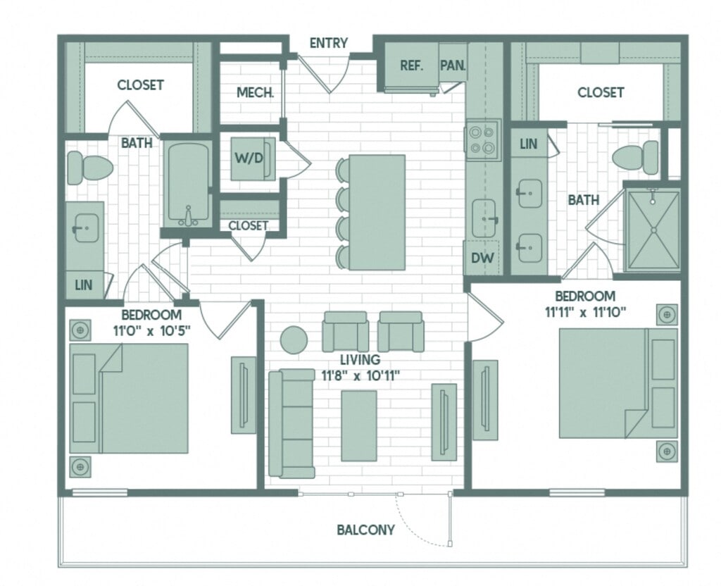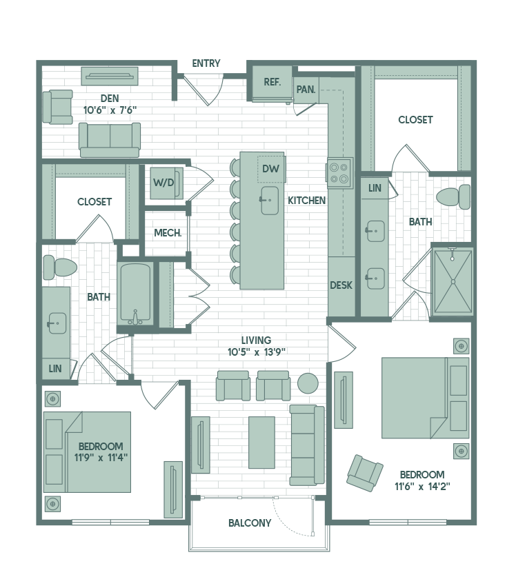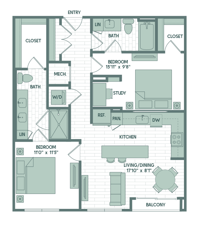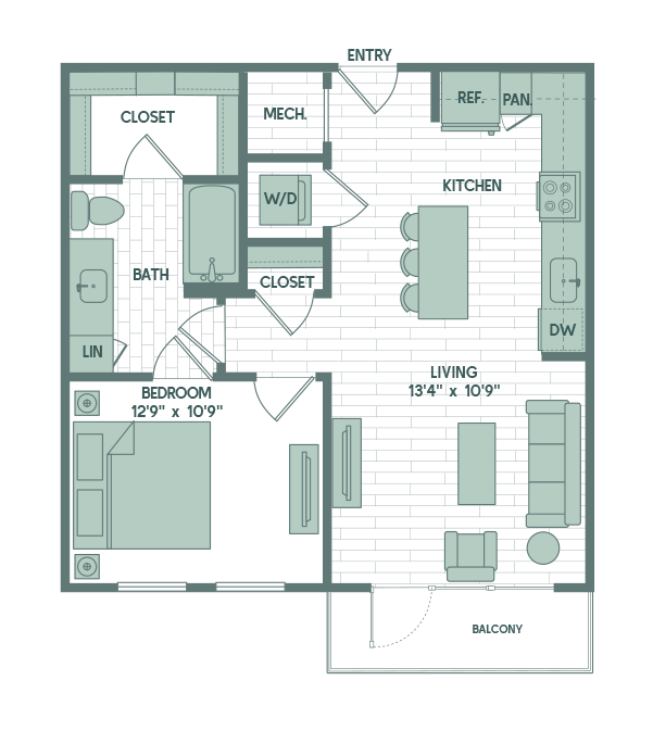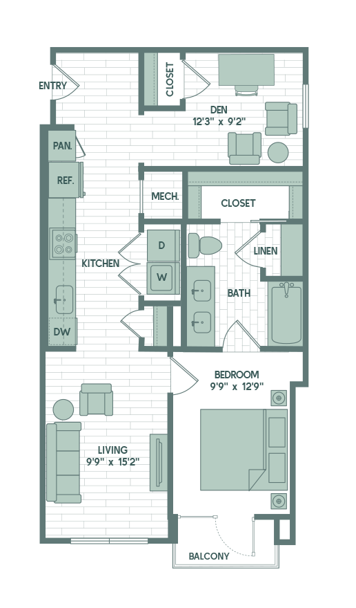 Modelo de apartamento: E1Desde $1,299Estudio, 1 Baño, 489-557 sq ftDisponible Ahora![]()