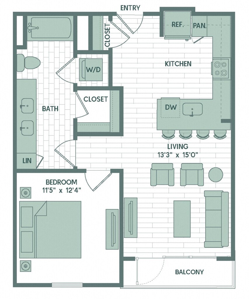 IRE1 - Plano 1 Unidad de apartamento: 156Modelo de apartamento: IRE1$1,401Estudio, 1 Baño, 507 sq ftDisponible AhoraIRE2