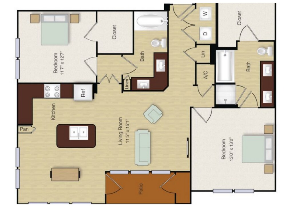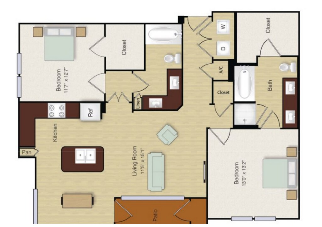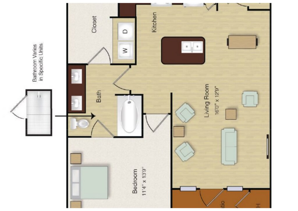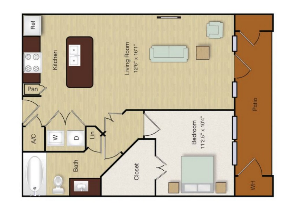 Modelo de apartamento: A6 - A6Desde $1,4181 Dormitorio, 1 Baño, 646 sq ftDisponible Ahora![]()