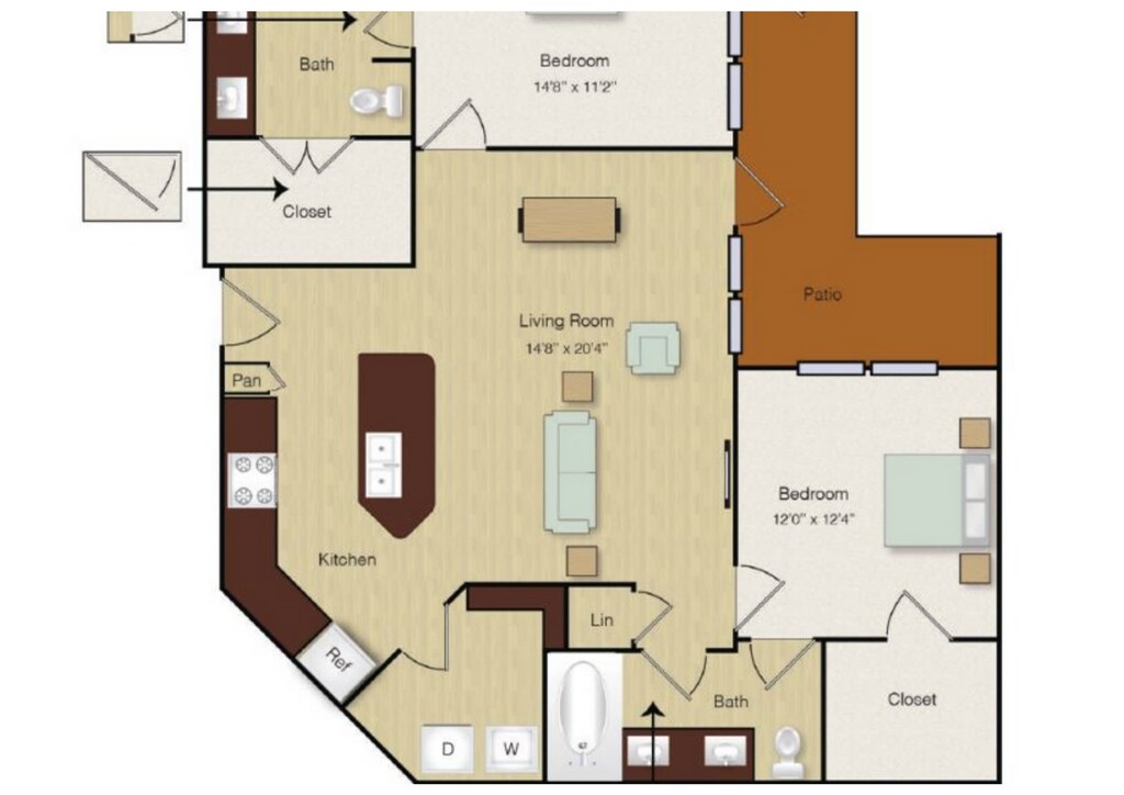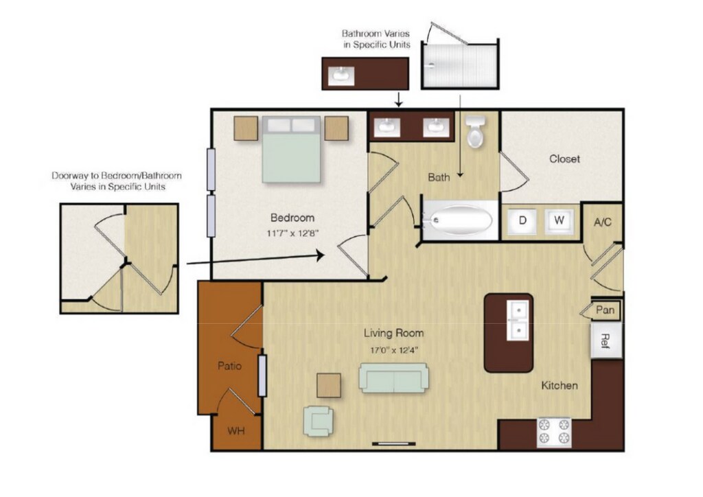 Modelo de apartamento: A8 - A8Desde $1,4681 Dormitorio, 1 Baño, 705 sq ftDisponible Ahora![]()