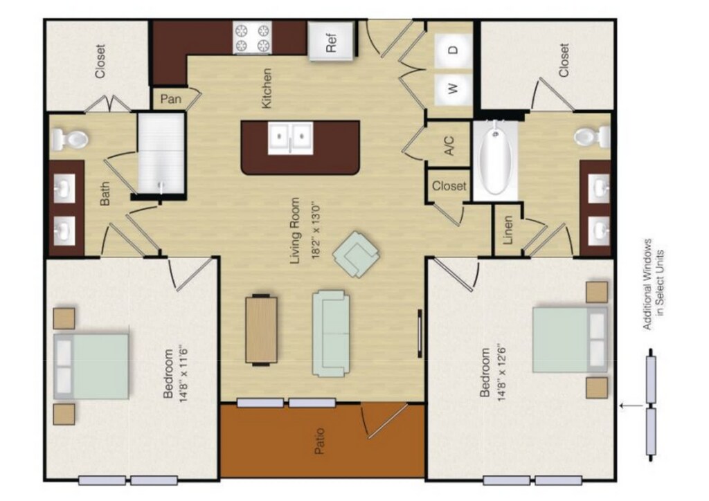 Modelo de apartamento: A4 - A4Desde $1,4431 Dormitorio, 1 Baño, 606 sq ftDisponible Ahora![]()