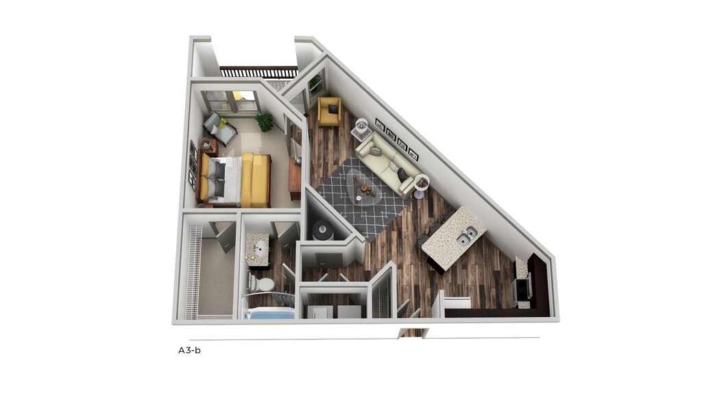 Modelo de apartamento: A3 - One Bedroom, One BathroomDesde $1,2251 Dormitorio, 1 Baño, 768 sq ftDisponible Ahora![]()
