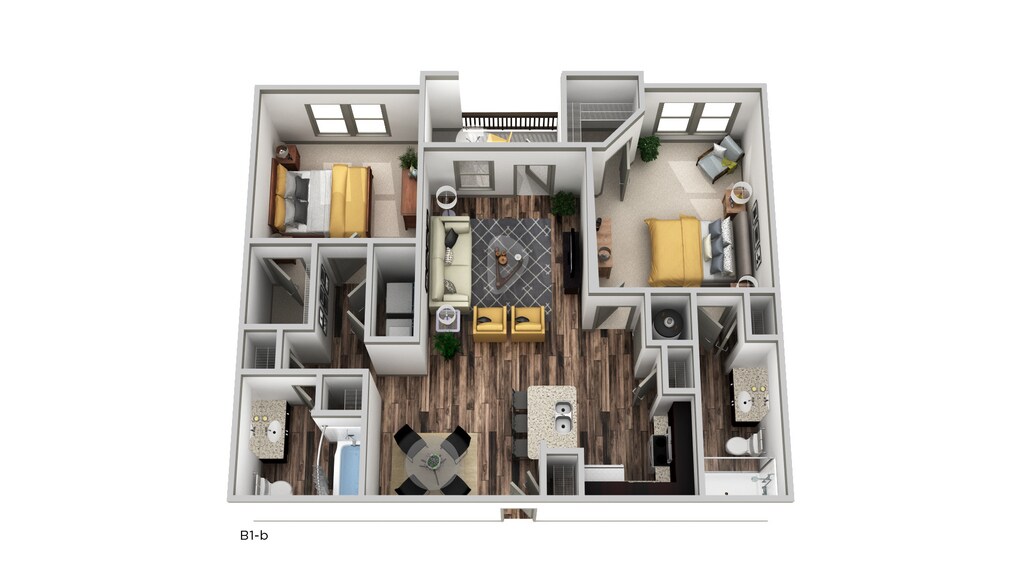 Modelo de apartamento: B1 - Two Bedroom, Two BathroomDesde $1,5372 Dormitorios, 2 Baños, 1102 sq ftDisponible Ahora![]()