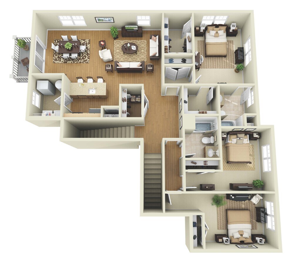 Modelo de apartamento: Inside Corner 1 Bedroom1 Dormitorio, 1 Baño, 795 sq ftDisponible Ahora![]()