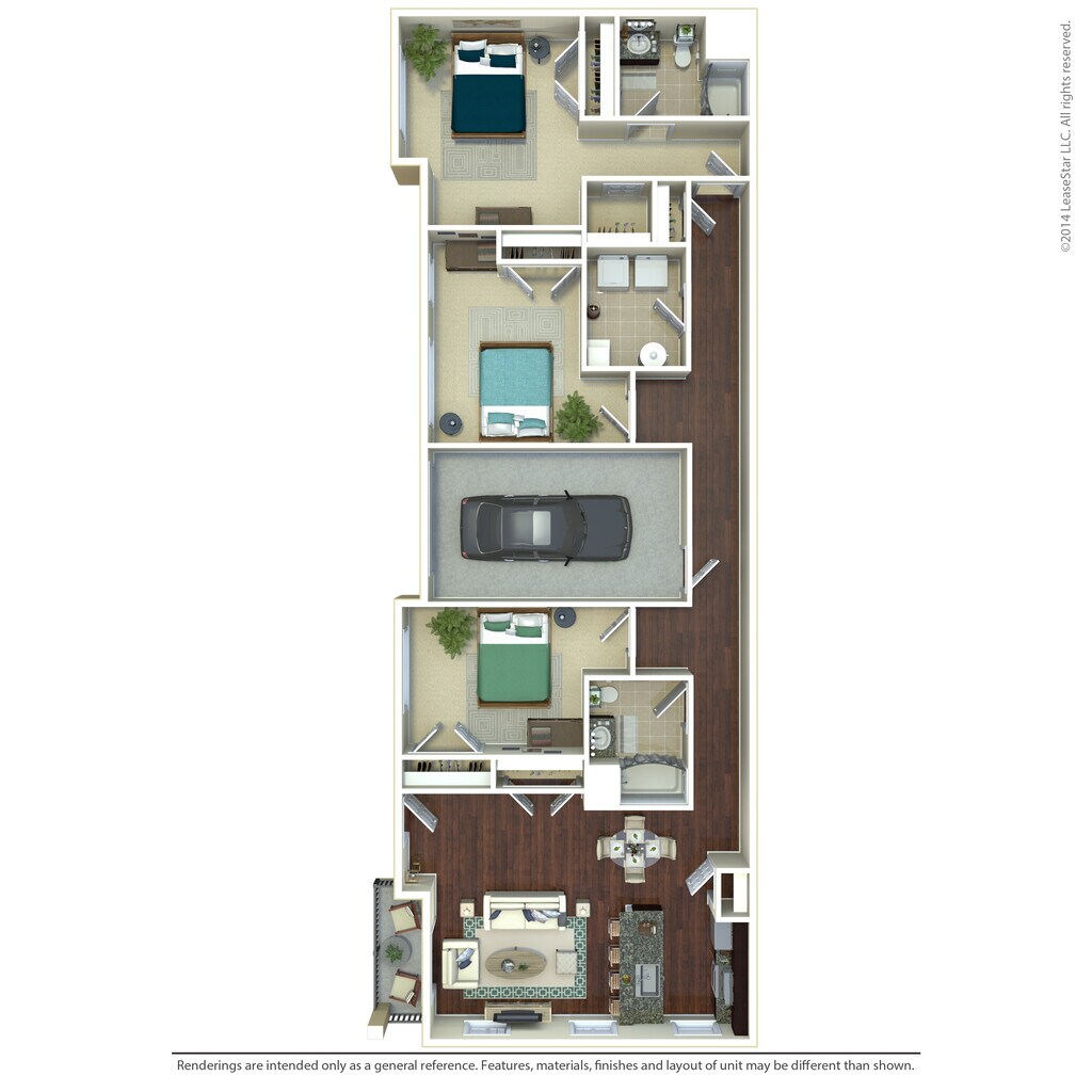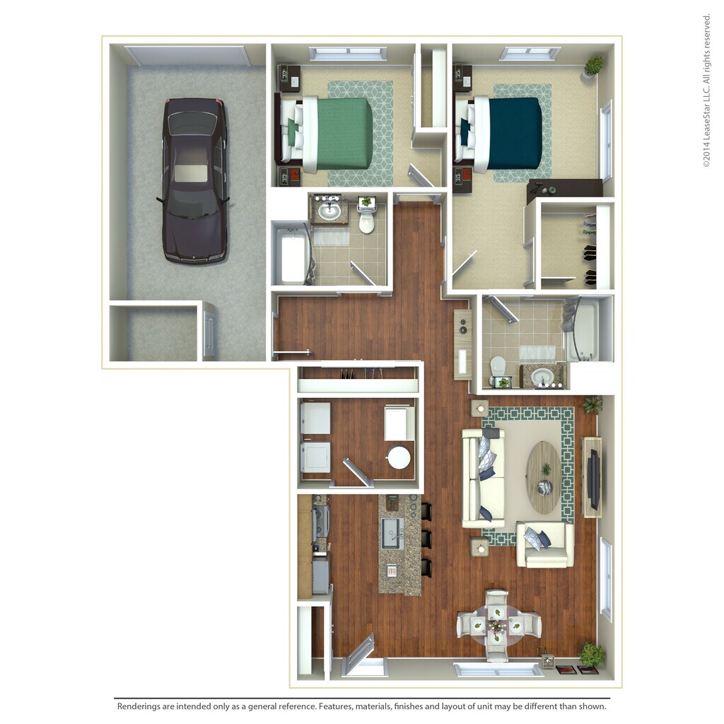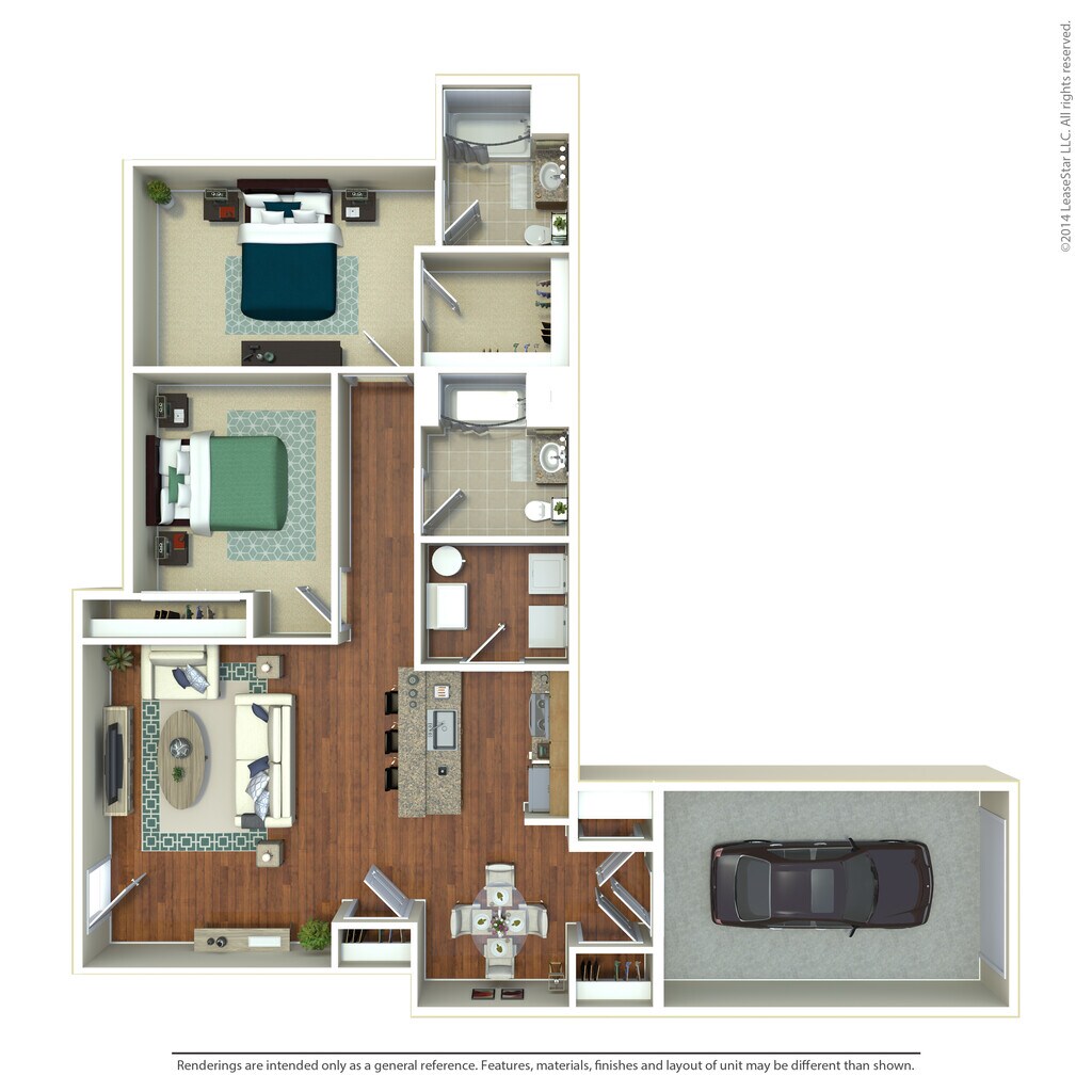 Modelo de apartamento: 1 Bedroom with Garage1 Dormitorio, 1 Baño, 947 sq ftDisponible Ahora![]()