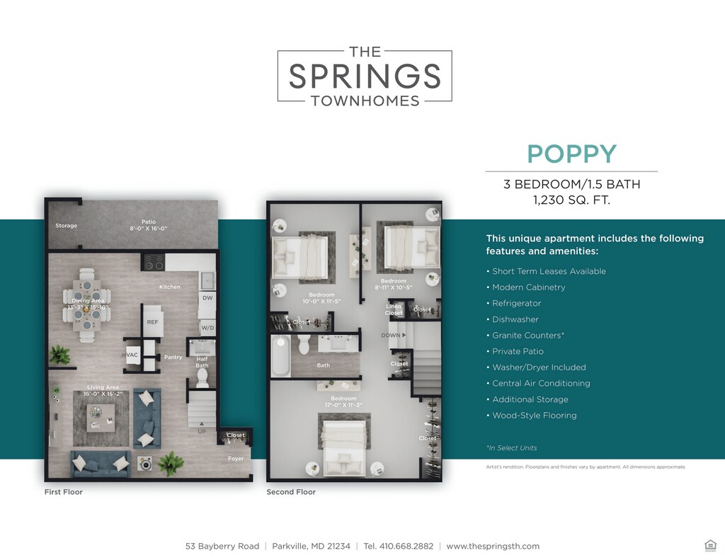 The Springs Townhomes ofrece apartamentos de 2 a 3 Dormitorios desde $1,728 con 1,025–1,230 pies cuadrados. Aquí está el precio actual y la disponibilidad: