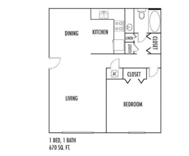 1 Dormitorio, 1 Baño, 670 pies²Disponible AhoraGalería del Modelo