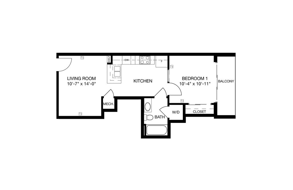 1 Dormitorio, 1 Baño, 547 pies²Galería del Modelo